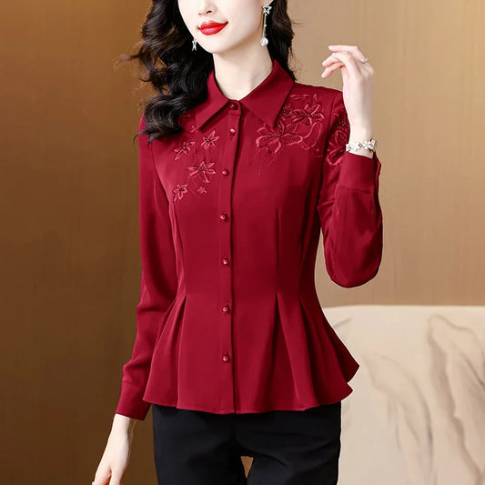 Long Sleeve Chiffon V Neck Slim Office Blouse