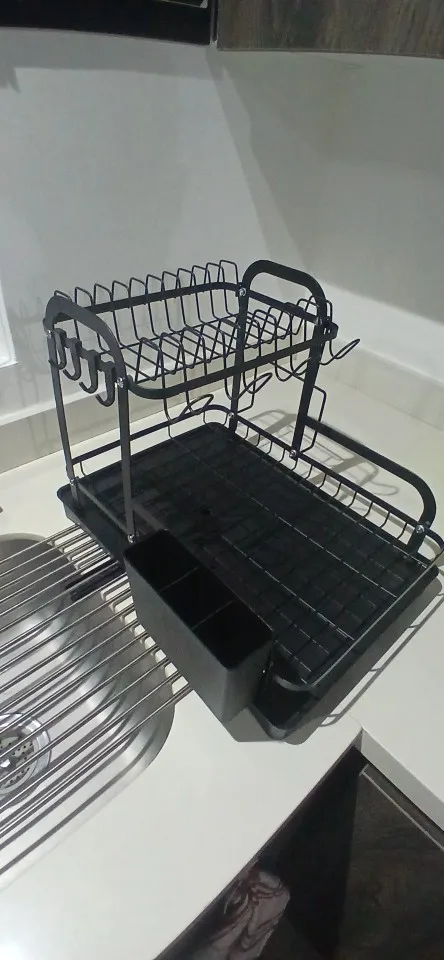| Hauptmerkmale | Maximieren Sie Ihre Küchenarbeitsfläche mit diesem hochwertigen, zweistöckigen Geschirrtrockner. Gefertigt aus rostfreiem Metall, ist er robust und langlebig und besticht durch sein modernes Design. Die innovative automatische Abflussfunktion sorgt dafür, dass das Wasser direkt ins Spülbecken fließt und Ihre Arbeitsfläche trocken und hygienisch bleibt. Mit seinen zwei geräumigen Ebenen bietet er ausreichend Platz für Teller, Schüsseln und Besteck und ist somit ein unverzichtbarer, stabiler Organizer für jede gut organisierte Küche. |