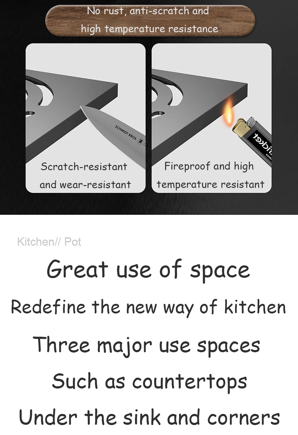 【Mehrzweck】: Geeignet für viele Szenen: Arbeitsplatte, Waschbecken, Ecke, nicht nur für Topfpflanzen, sondern kann auch als Lebensmittelständer/Obst- und Gemüseständer verwendet werden. Verstellbarer Topfständer, flexible Aufbewahrung, saubere Küche.