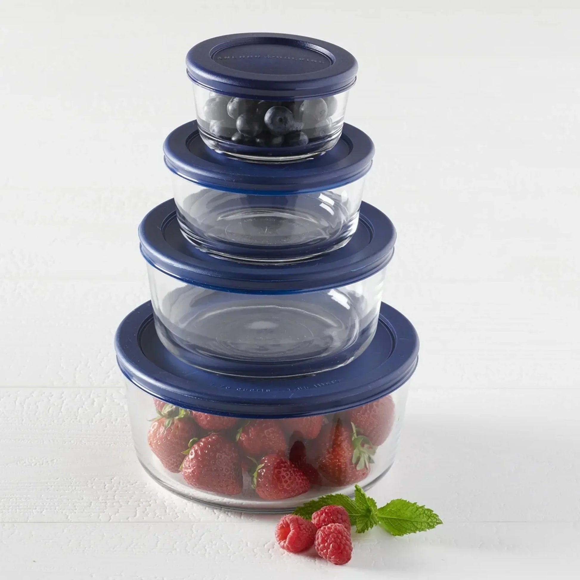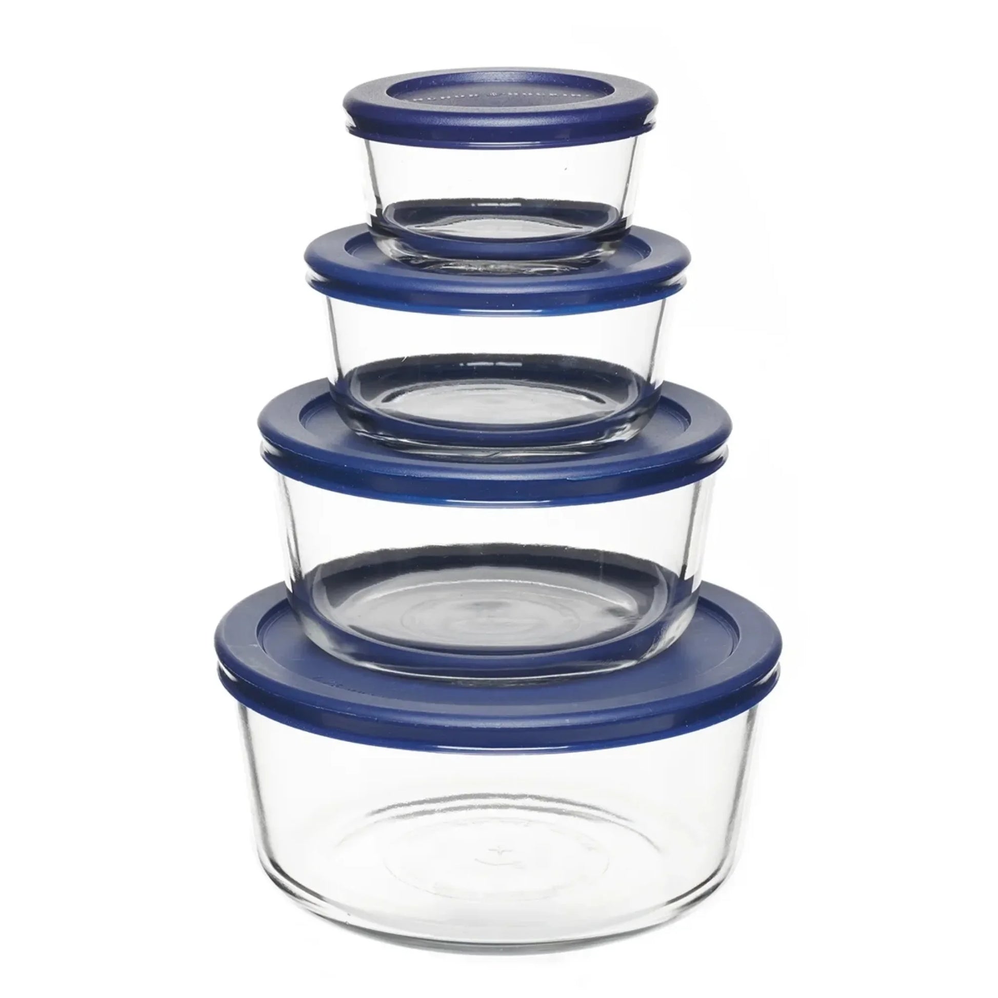 - Komplettes 8-teiliges Set: Enthält vier runde Glasbehälter (1, 2, 4 und 7 Tassen) mit passenden Kunststoffdeckeln.