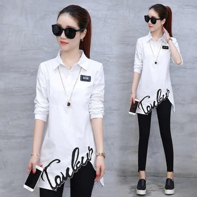 Asymmetrisches Hemd mit besticktem Reversknopf
