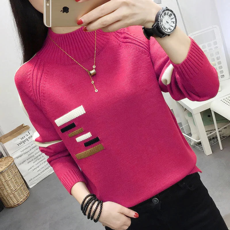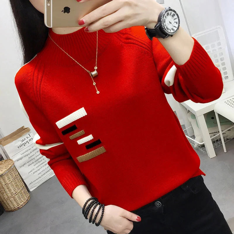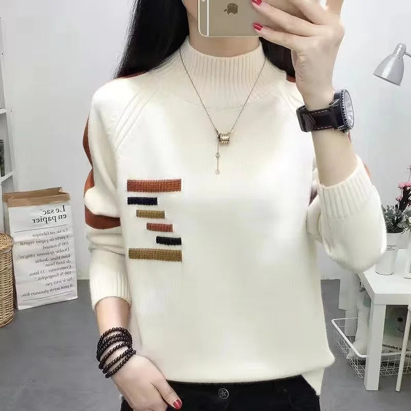 Herbstlicher, halbhoher Kragen, gestrickter, lockerer Pullover