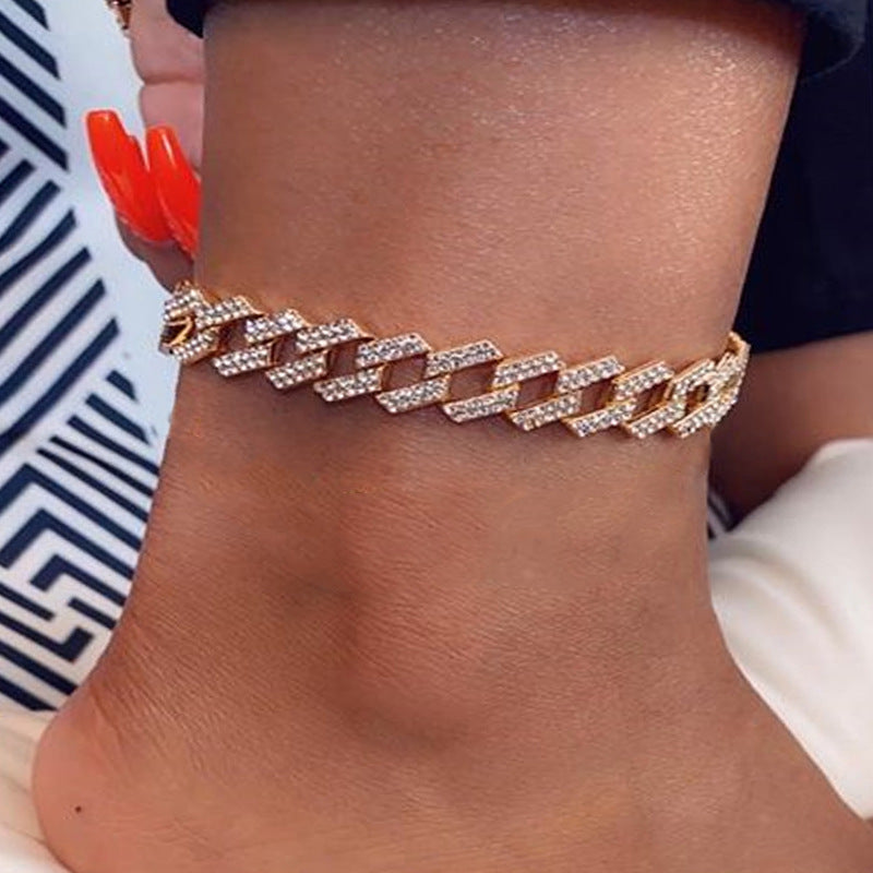 Mit Diamanten besetztes kubanisches Hip-Hop-Fußkettchen
