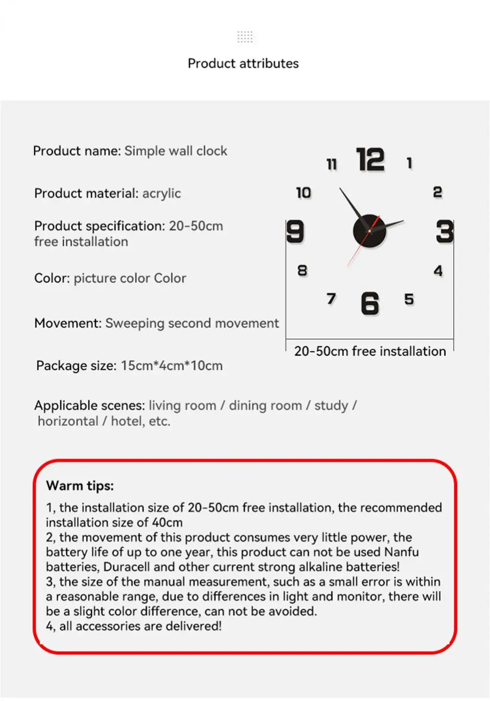 - Funktion 7: Einfache Installation Uhr Wandaufkleber