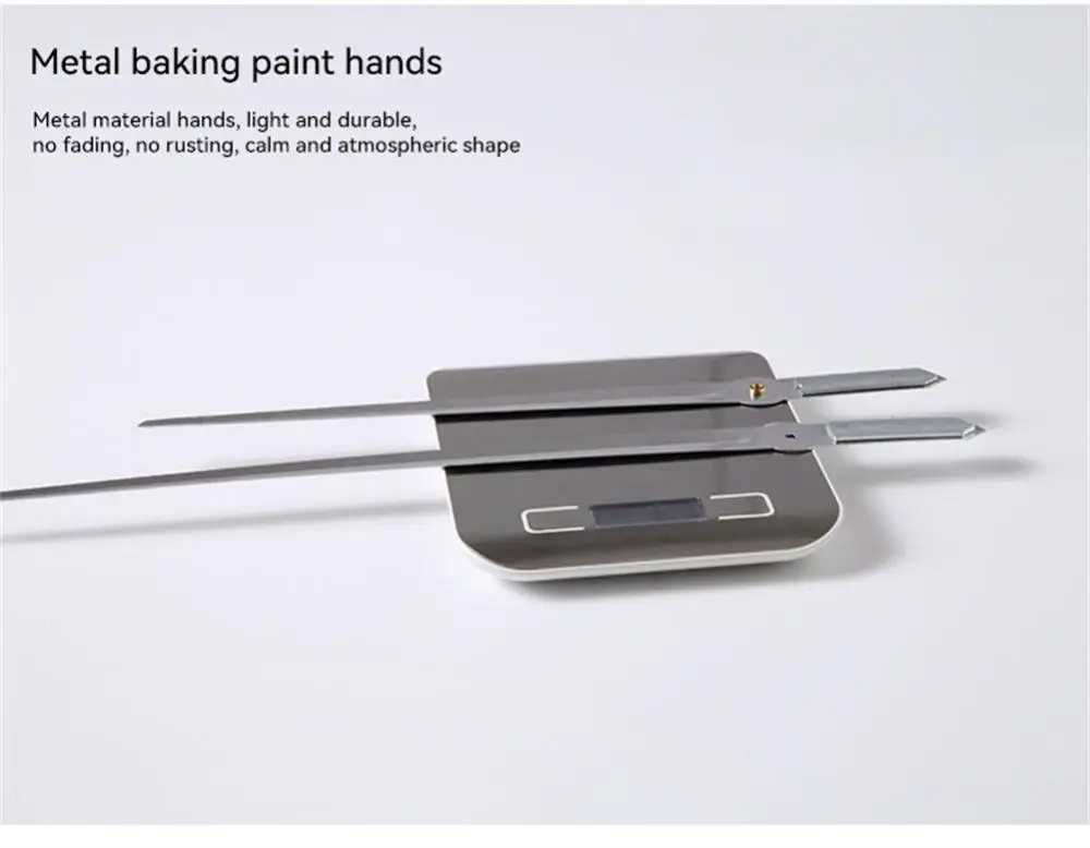 Zeiger aus Metall, leicht, stabil und langlebig, verblasst nicht, rostet nicht und die Form ist ruhig und stimmungsvoll.