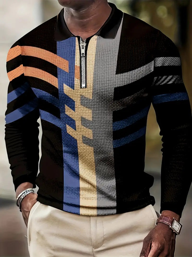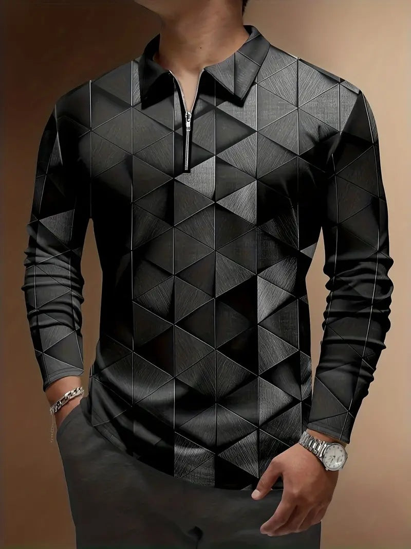 Herren-Poloshirts mit 3D-Digitaldruck und langen Ärmeln