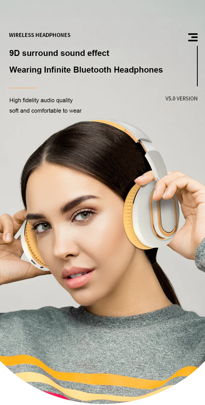 Kabelloses Headset Bluetooth 10 Stunden Wiedergabe Kopfhörer mit Mikrofon Musik Spiel Sport Ohrhörer Faltbar Unterstützung TF SD-Karte Tws Ohrhörer