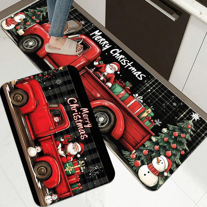 Küchenmatten-Set mit „Frohe Weihnachten“-Motiv und Schneemann-Aufdruck