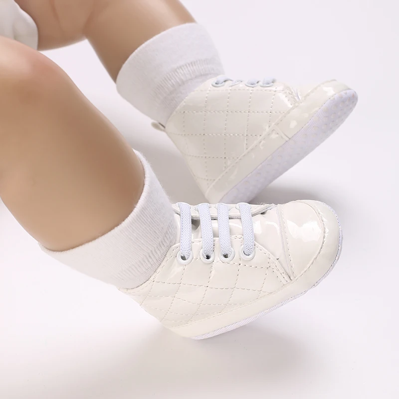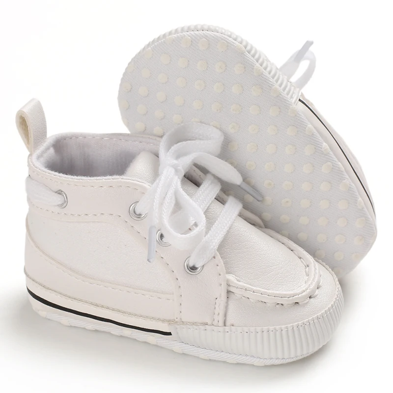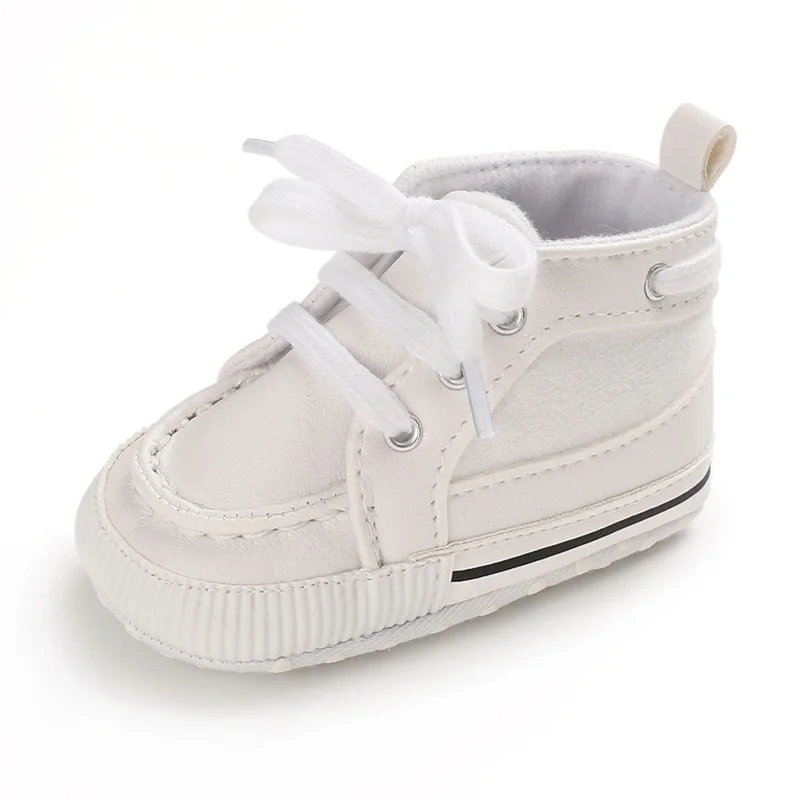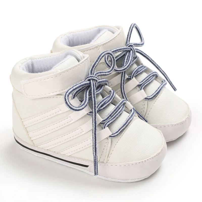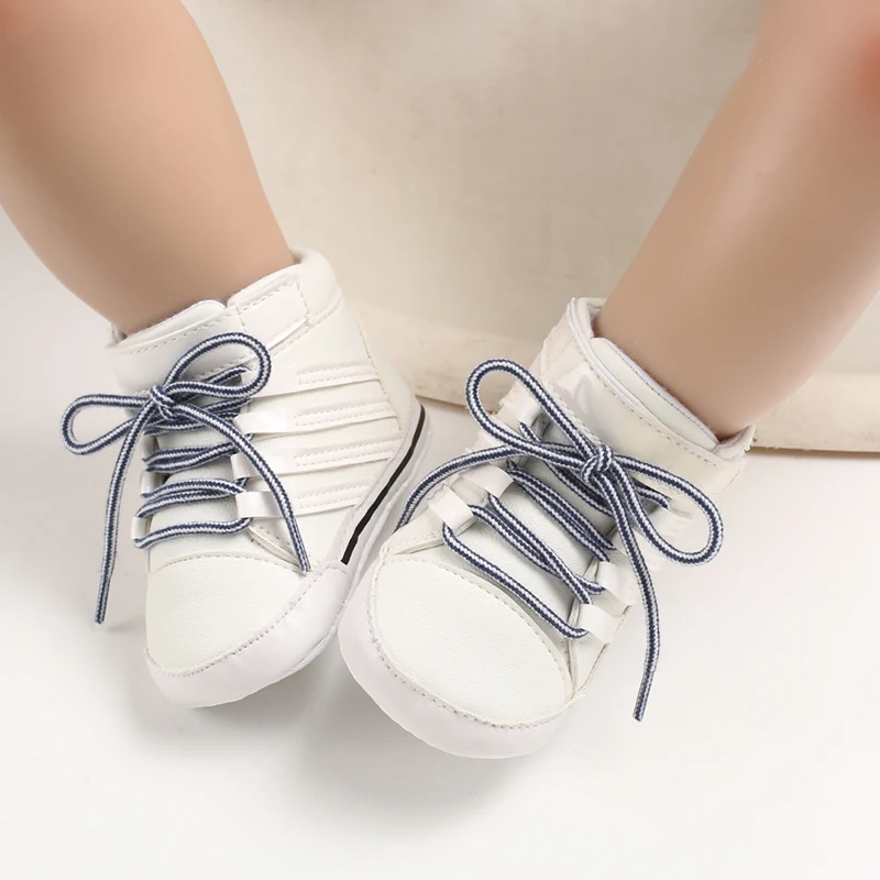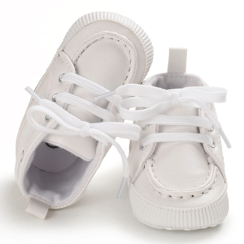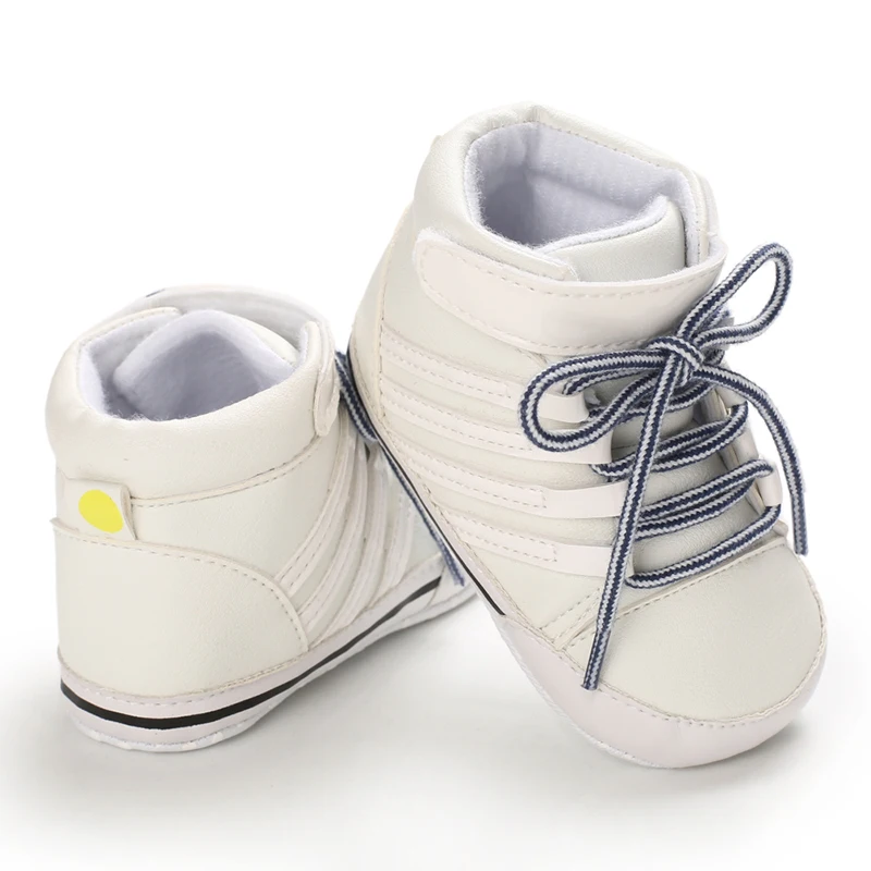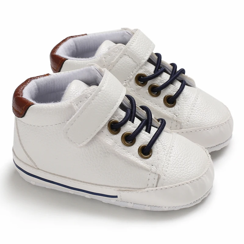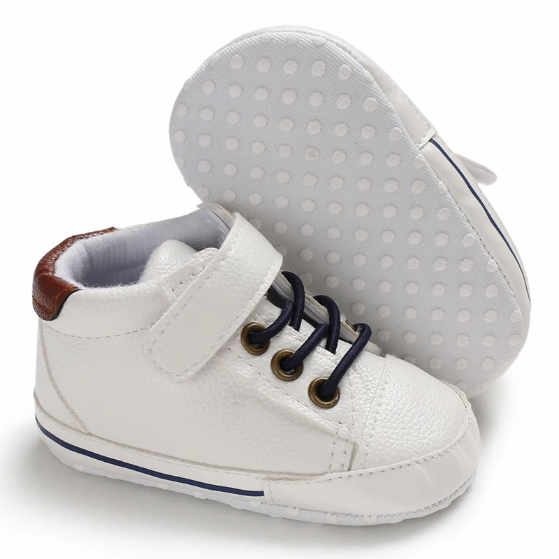 Neugeborene Babyschuhe Junge Mädchen Klassische Sportschuhe Weiche Sohle PU-Leder Mehrfarbige Lauflernschuhe Lässige Turnschuhe Weiße Taufschuhe