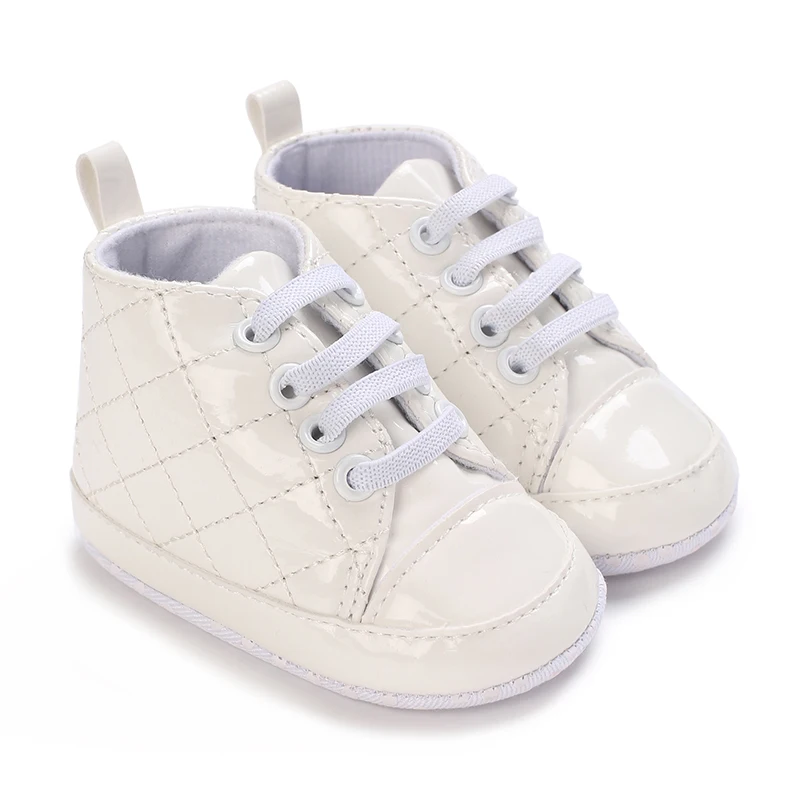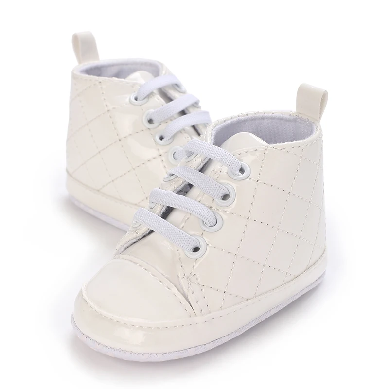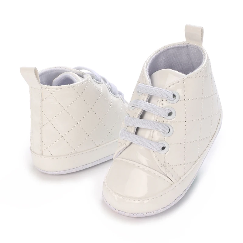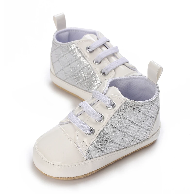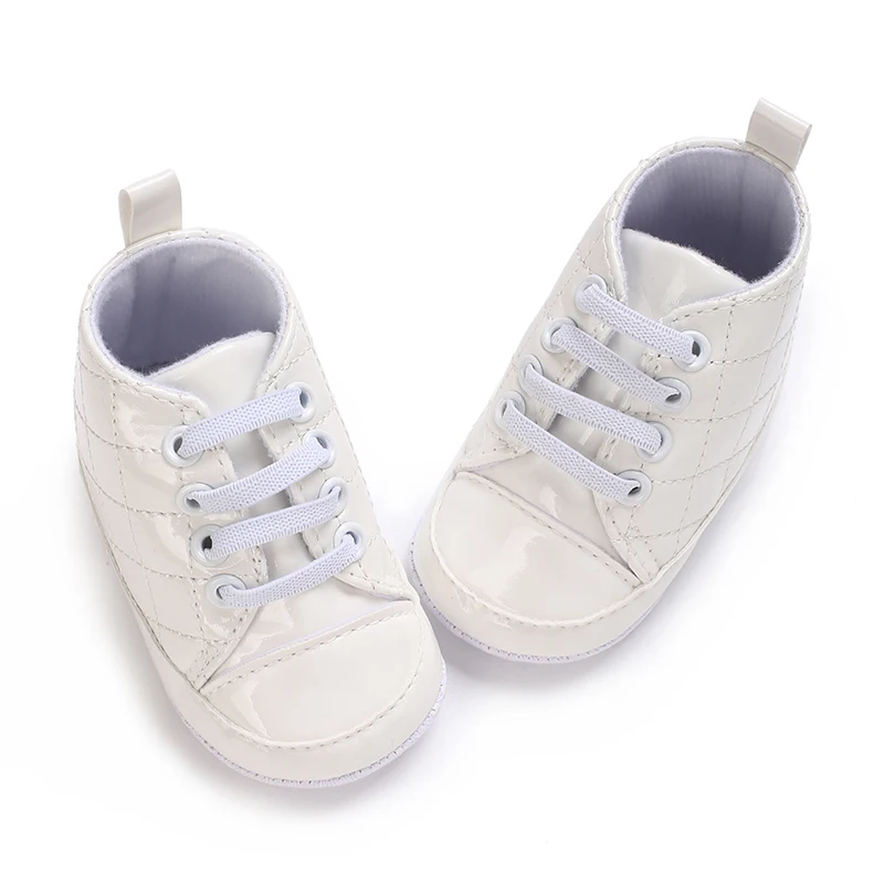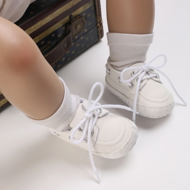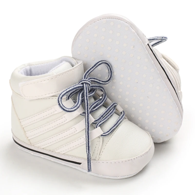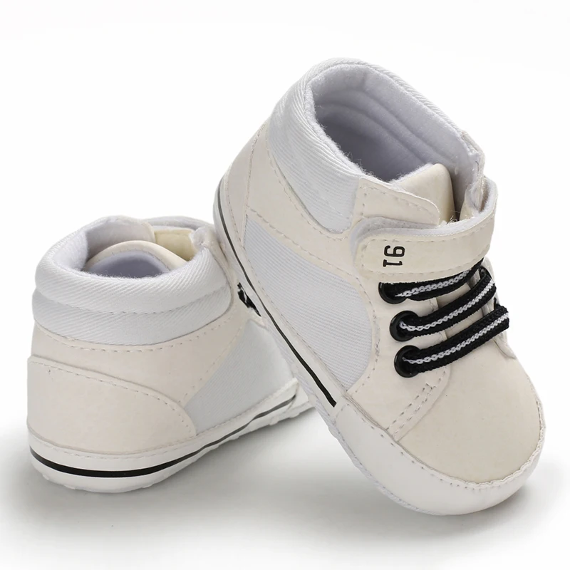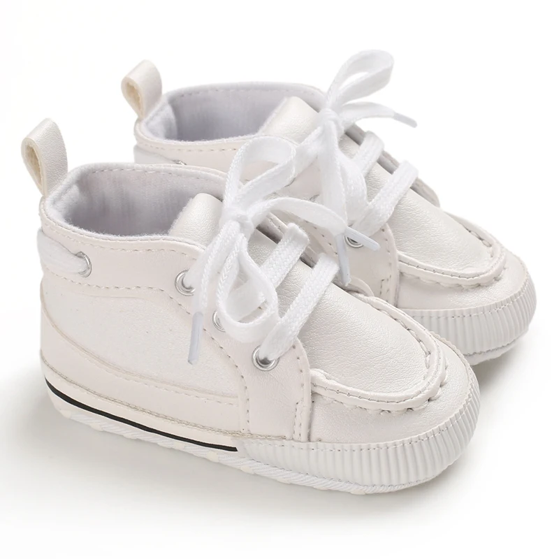 Neugeborene Babyschuhe Junge Mädchen Klassische Sportschuhe Weiche Sohle PU-Leder Mehrfarbige Lauflernschuhe Lässige Turnschuhe Weiße Taufschuhe