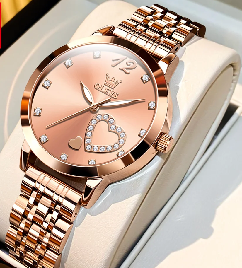 Damen-Armbanduhr mit Diamant-Herz