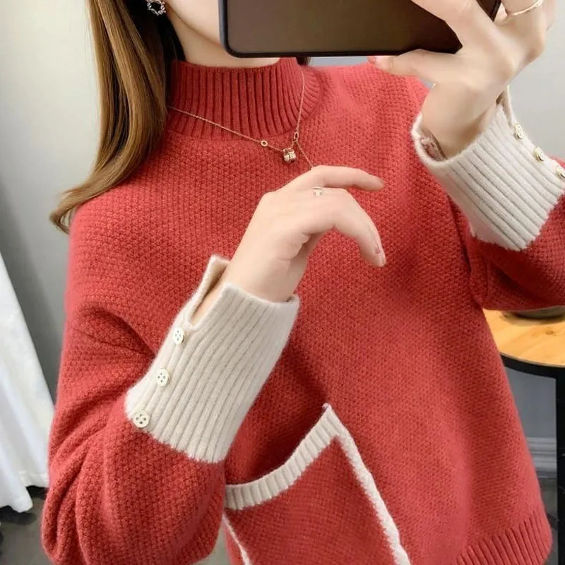 Verdickter, halbhoher, lockerer Strickpullover für Damen im Herbst und Winter