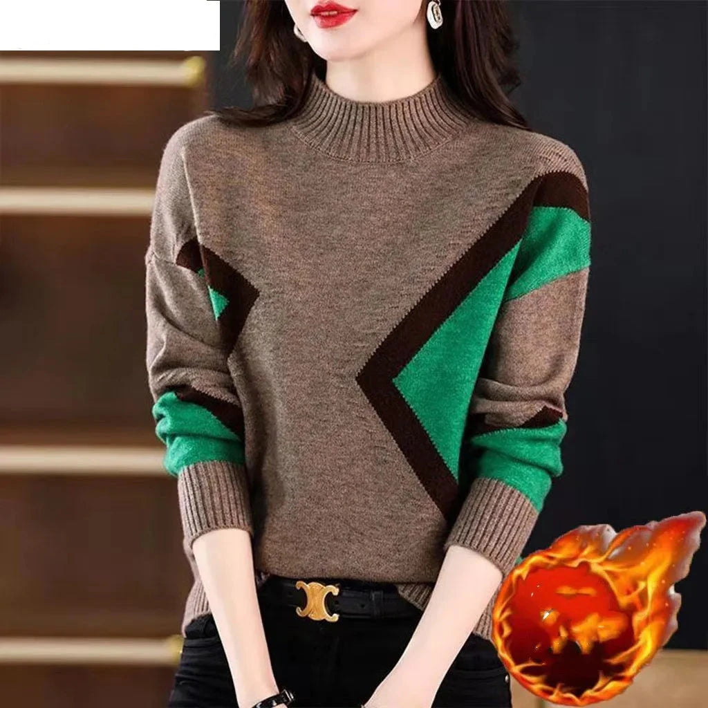 Velvet & Thickened Damen-Strickpullover mit Farbblock