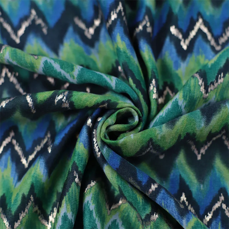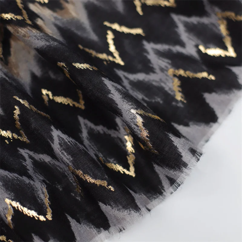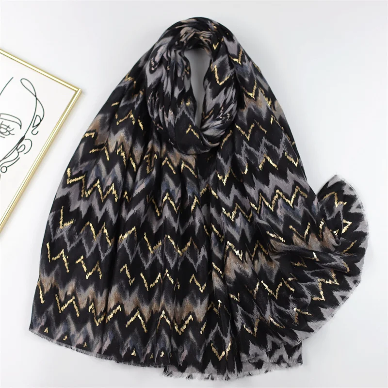 Damen Schal mit geometrischen Wellen, gestreiften Linien und Fransen, Viskose, hochwertiger Pashmina-Schal, Stola, Bufanda, muslimischer Hijab, 180 x 90 cm