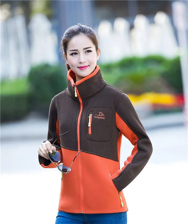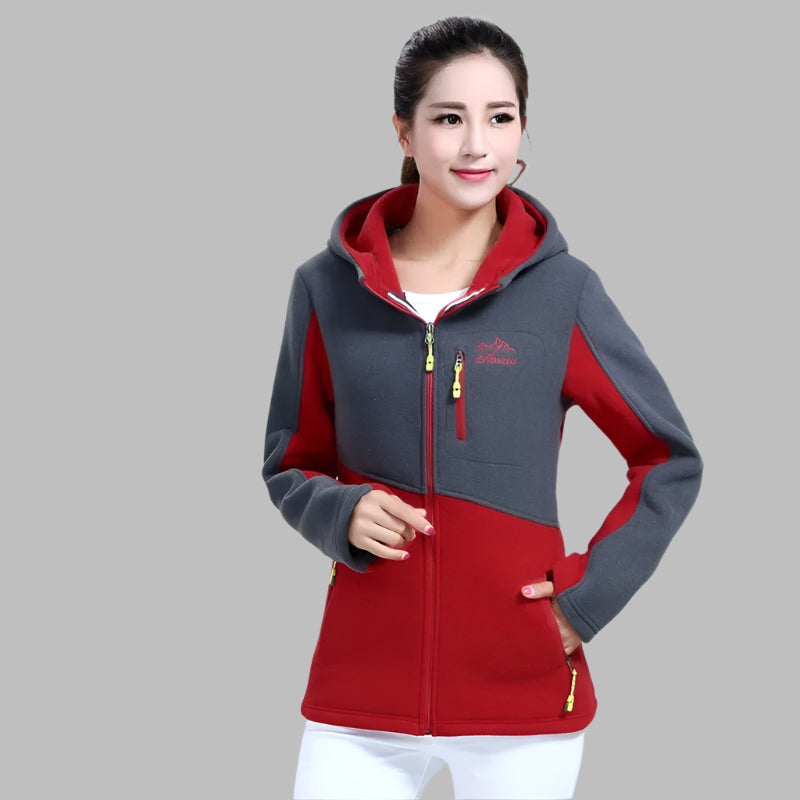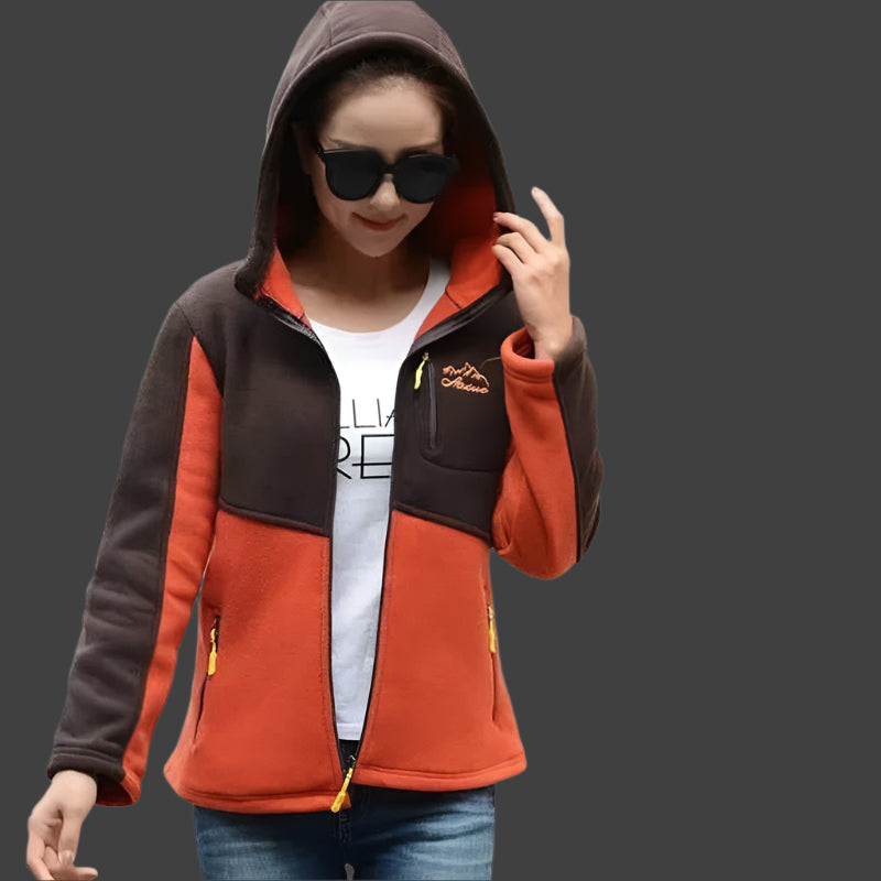 Locker geschnittene, bestickte Fleecejacke für Damen mit Reißverschluss