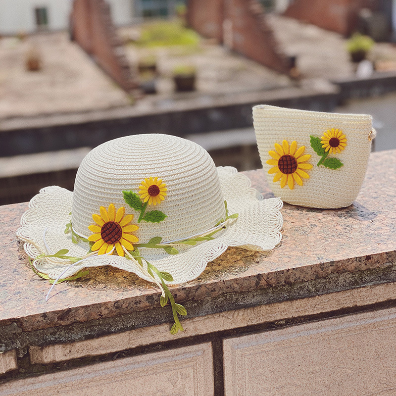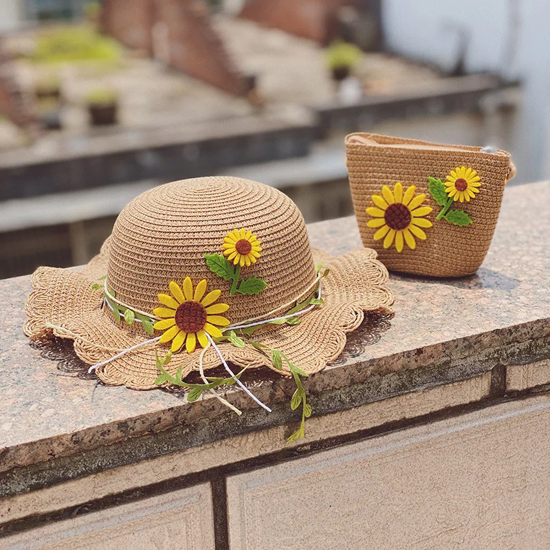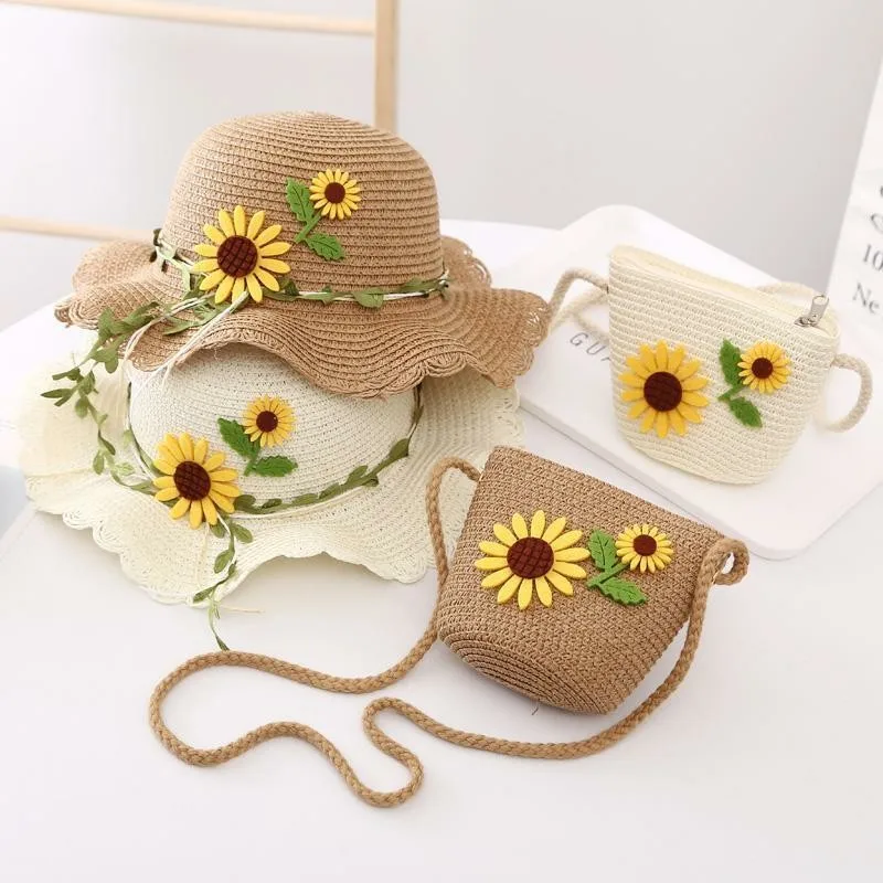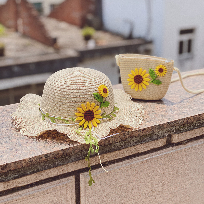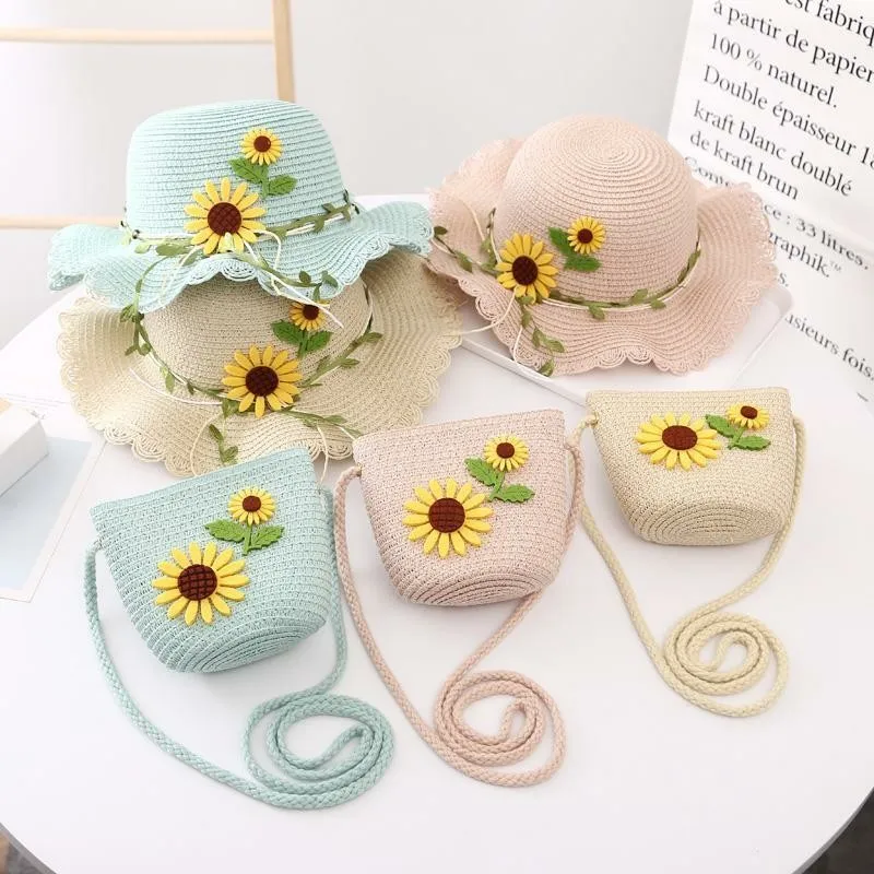 Name: Süße Sonnenhüte für Kinder, Sonnenblume, Sommer-Sonnenhut, Schirmmütze, Strohhut, Tasche für Mädchen, Kinder, Strand-Reisehut, Mädchen, süße Sonnenschutzkappe