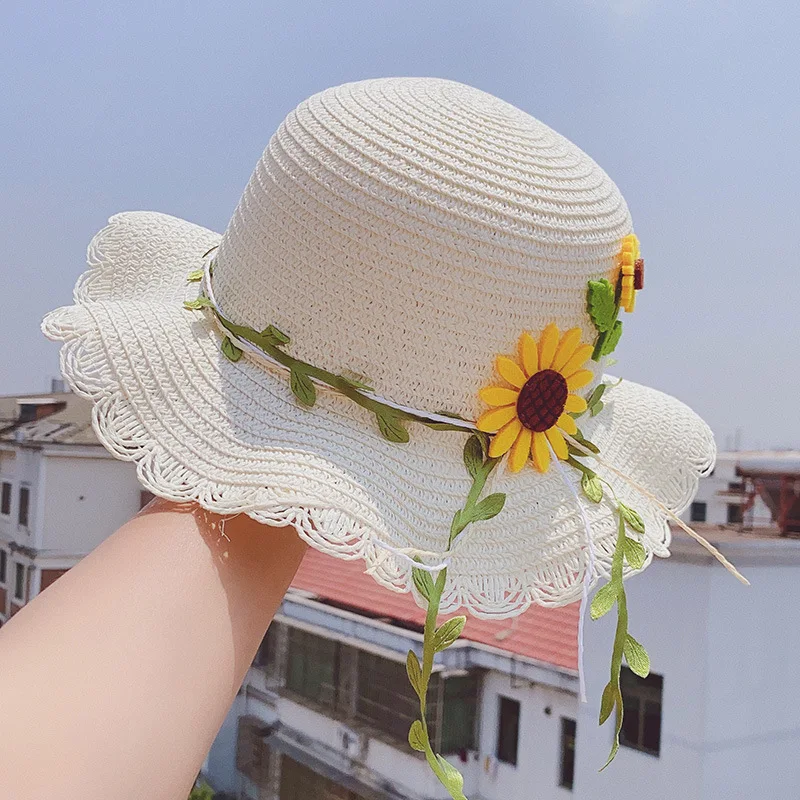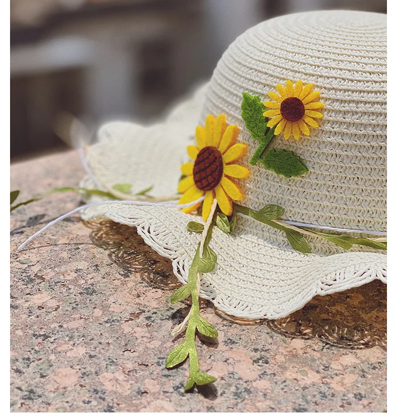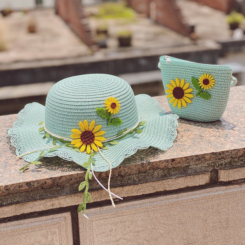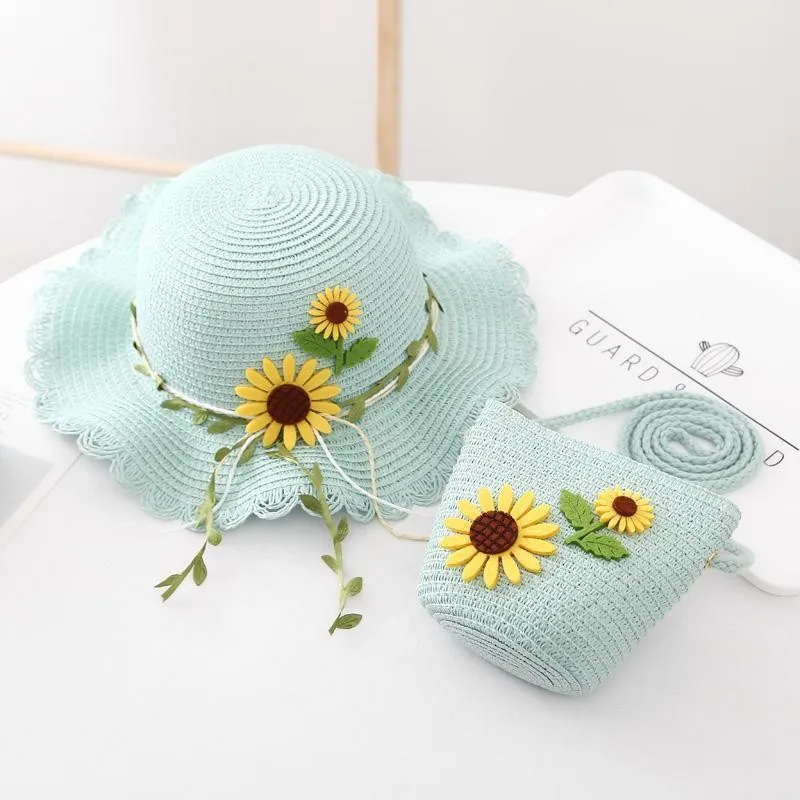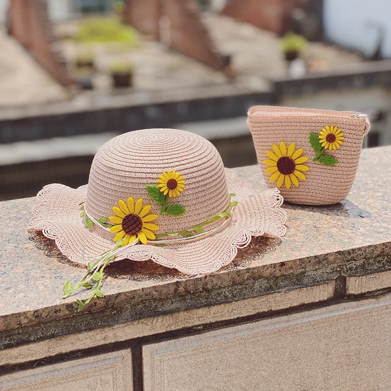 Name: Süße Sonnenhüte für Kinder, Sonnenblume, Sommer-Sonnenhut, Schirmmütze, Strohhut, Tasche für Mädchen, Kinder, Strand-Reisehut, Mädchen, süße Sonnenschutzkappe