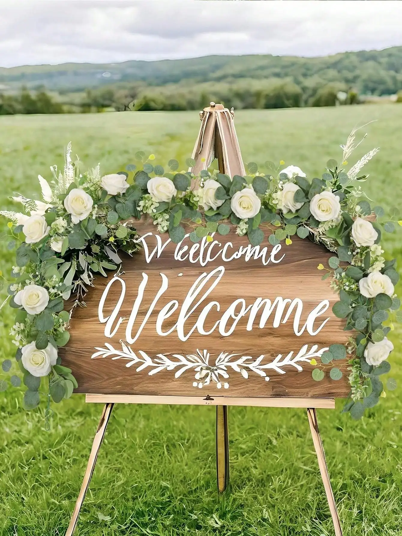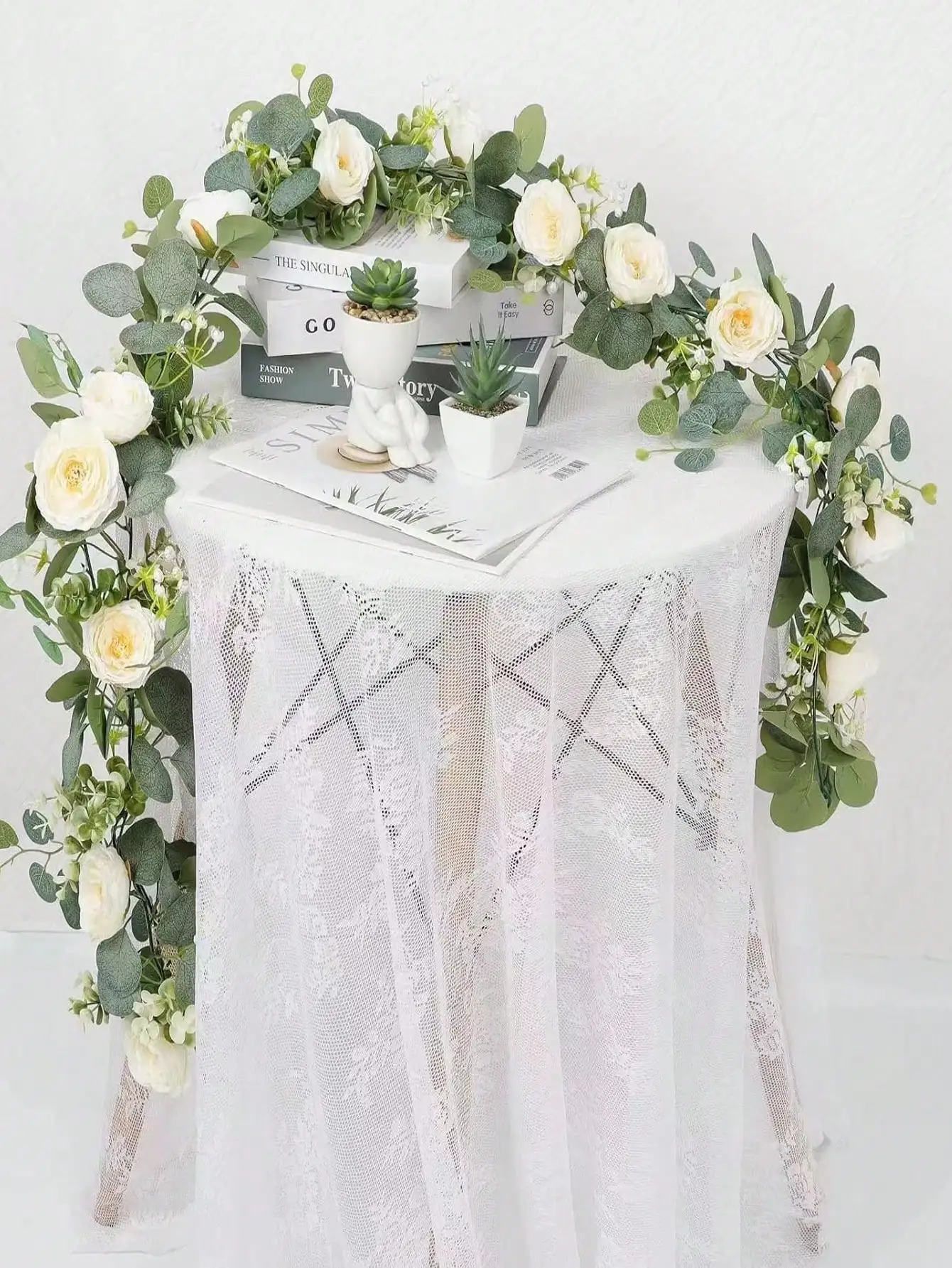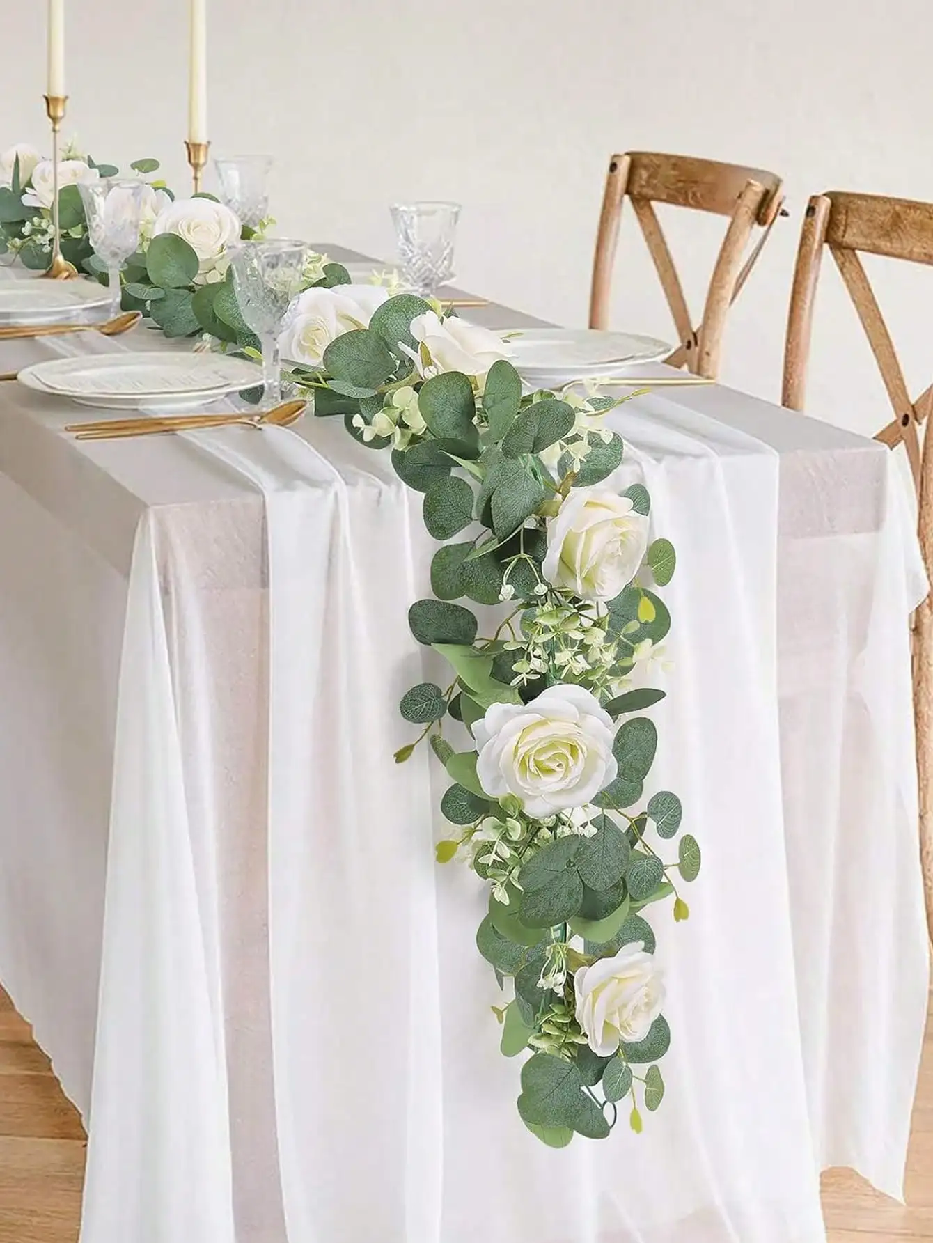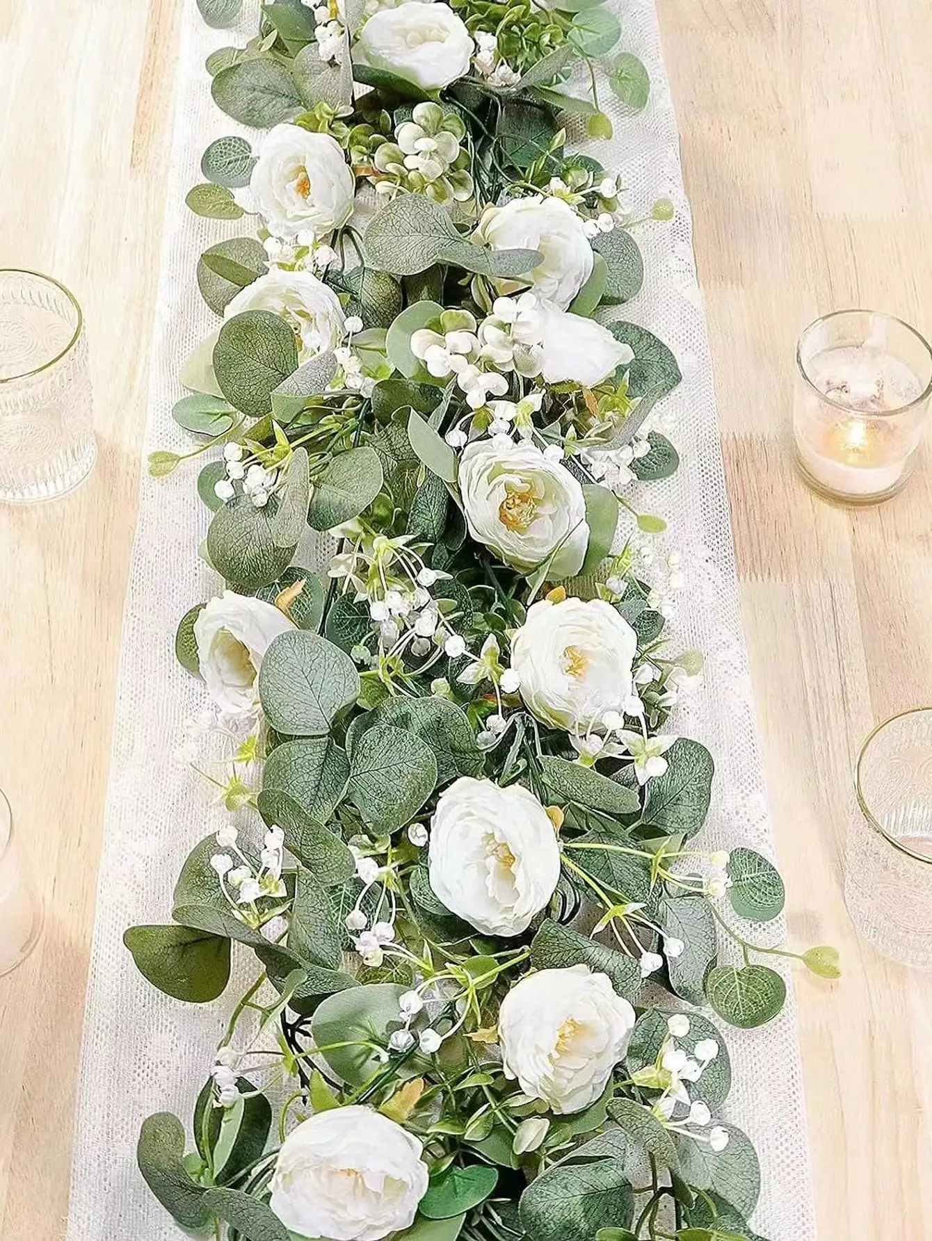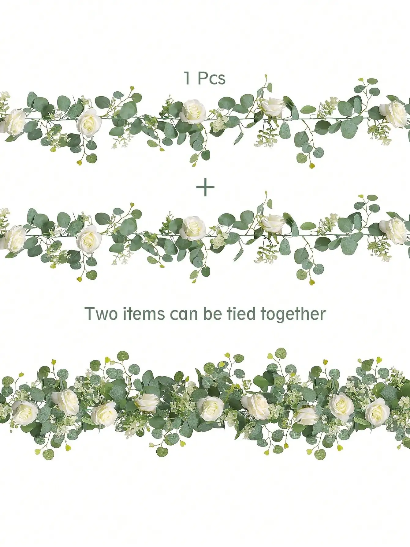 1 branche d'eucalyptus artificiel et de rose blanche.
