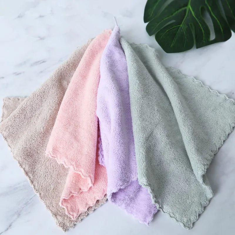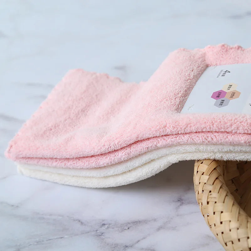 Nom : serviette carrée en polaire corail, quatre avantages : 1 doux et délicat 2 forte absorption d'eau 3 matériau facile à sécher, 4 pas facile à décolorer, taille : 30 x 30 cm 4 pièces. |