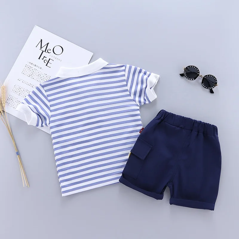 Ensembles de sport rayés à manches courtes et short pour bébé garçon