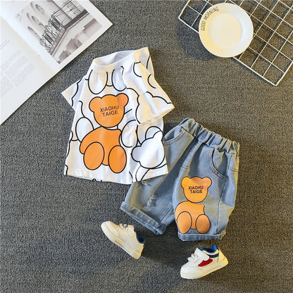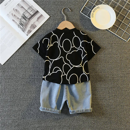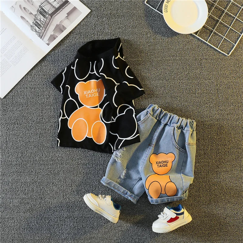 Ensemble t-shirt et short en jean à imprimé dessin animé pour bébé garçon
