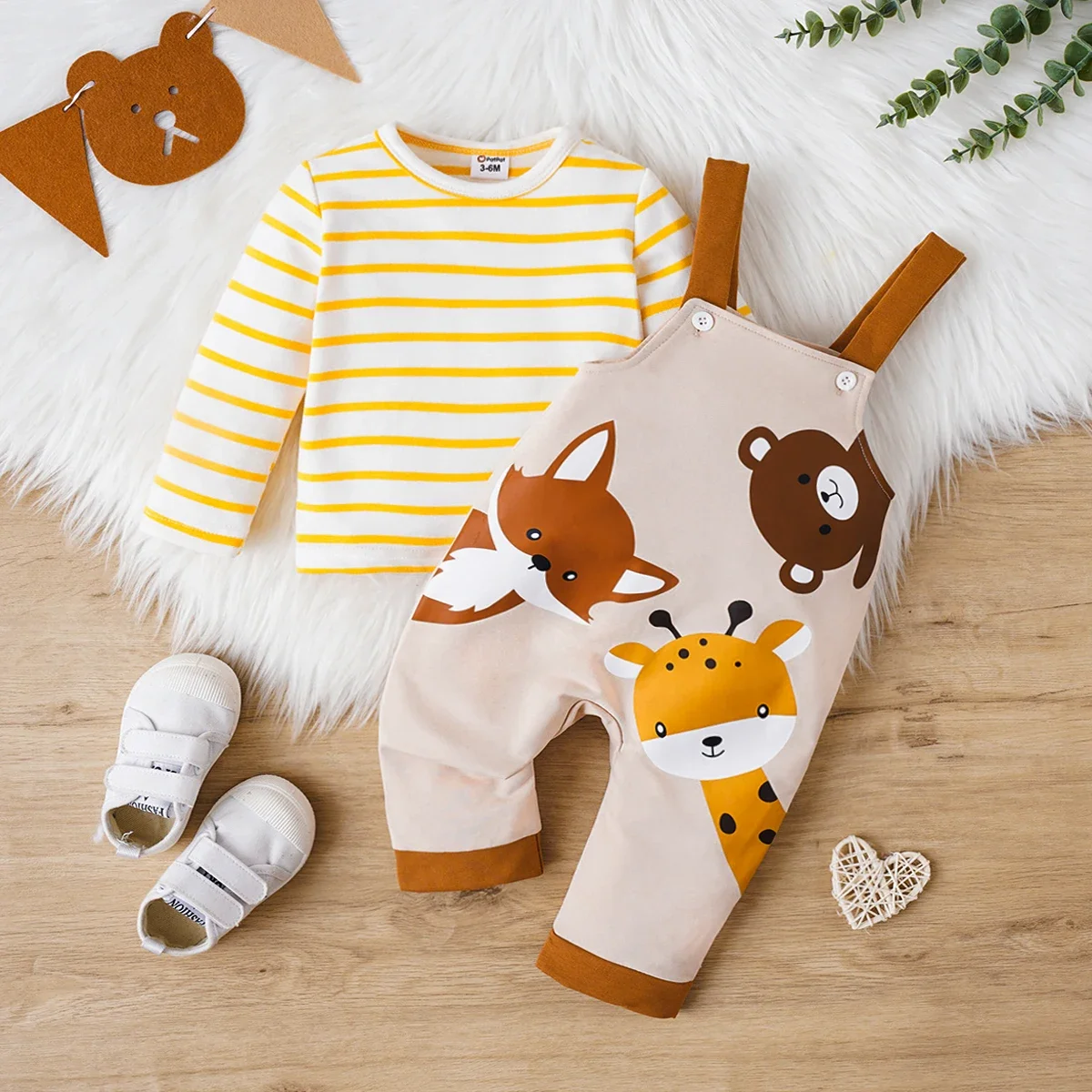PatPat Ensemble 2 pièces à manches longues pour bébé fille/garçon, motif animal, parfait pour les sorties et le quotidien, style basique et confortable