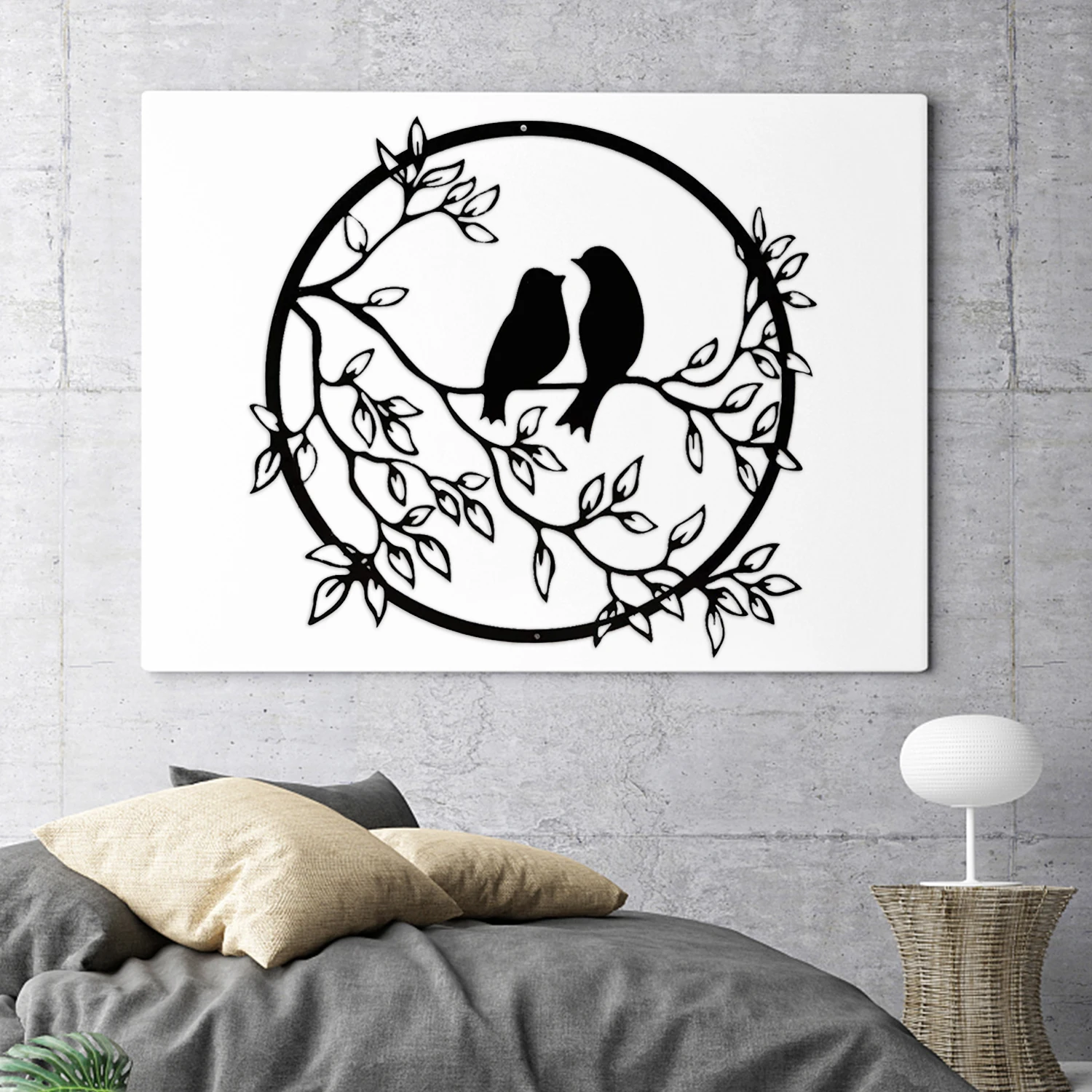 - Nom du produit : Décoration murale en métal représentant des oiseaux sur une branche
