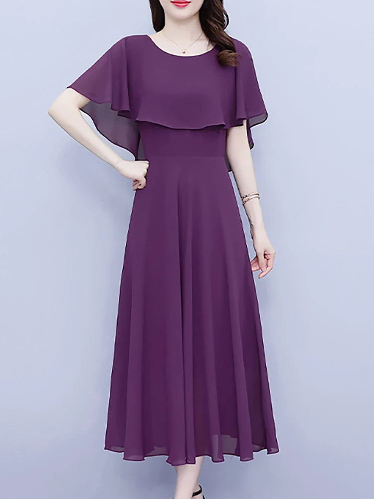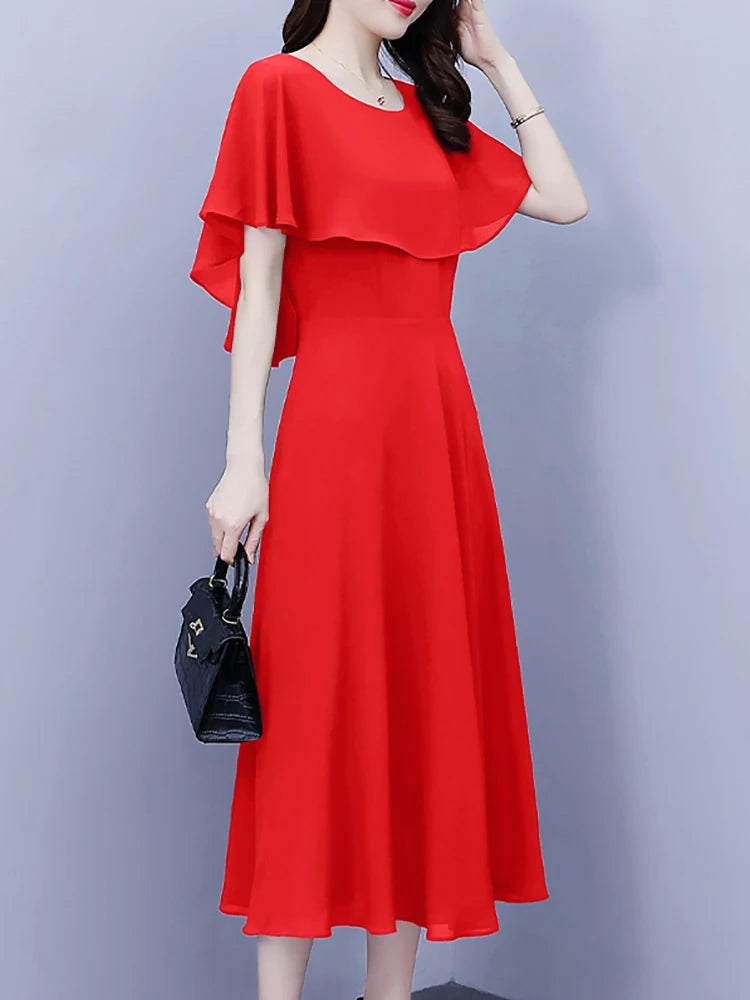 - Robe midi de soirée vintage noire : robe longue décontractée à volants pour les vacances à la plage