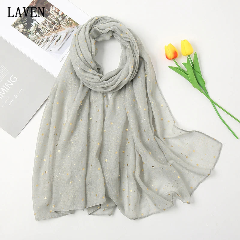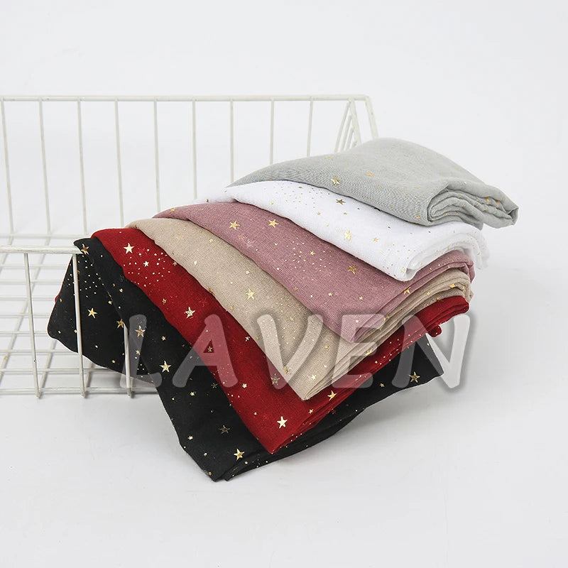 Nouveauté coton Hijab écharpe paillettes étoile dorée plaine châle doux foulards femmes musulman Turban solide foulard Bandana 180*75 cm