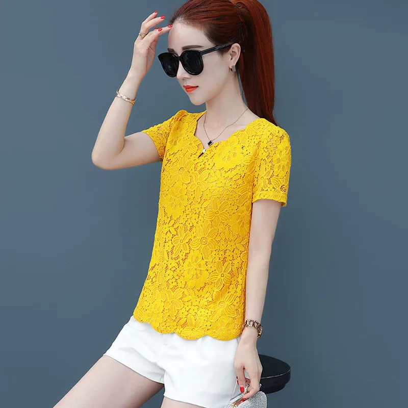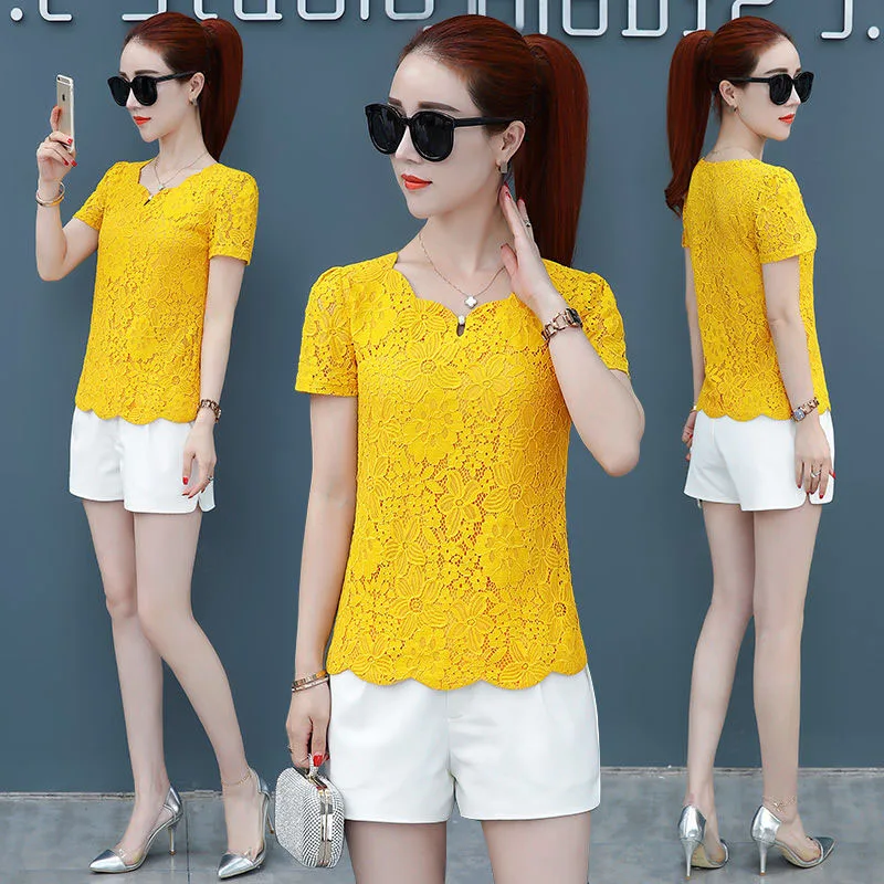 Chemisier en dentelle jaune printemps-automne coréen