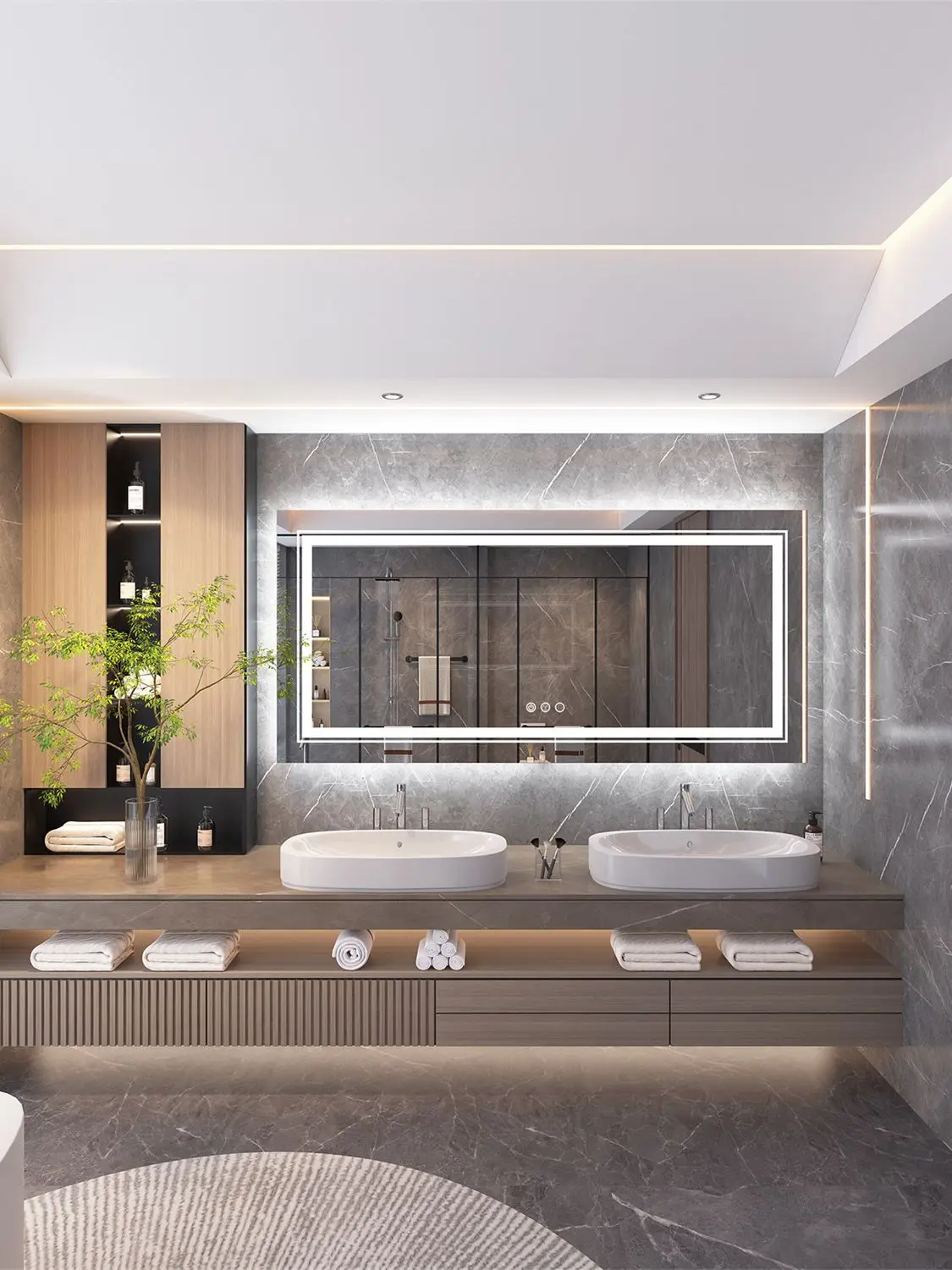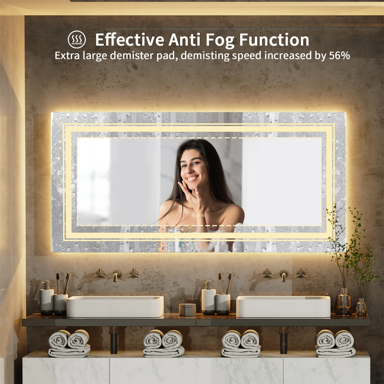 - Caractéristique : capteur tactile, antibuée, lumière rétroéclairée, bande LED.