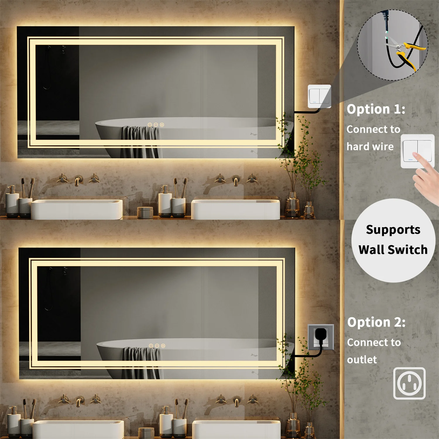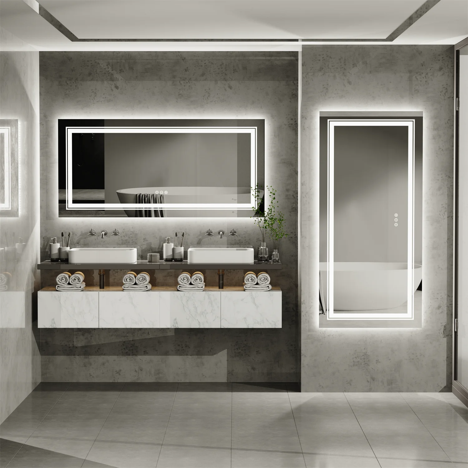 Grand miroir lumineux à LED à intensité variable