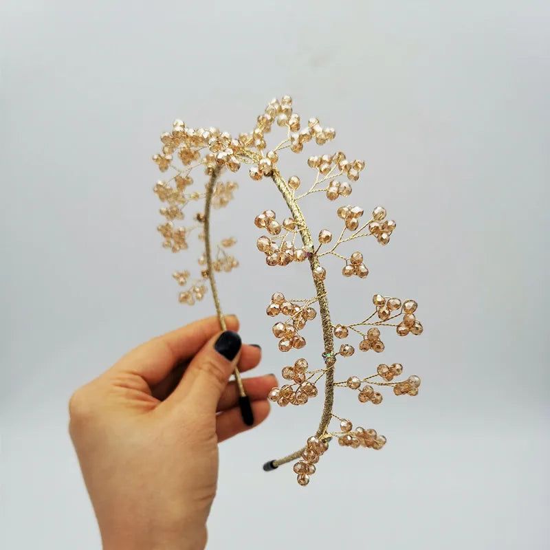 Bandeau de mariage double fin à motif de feuilles pour femme