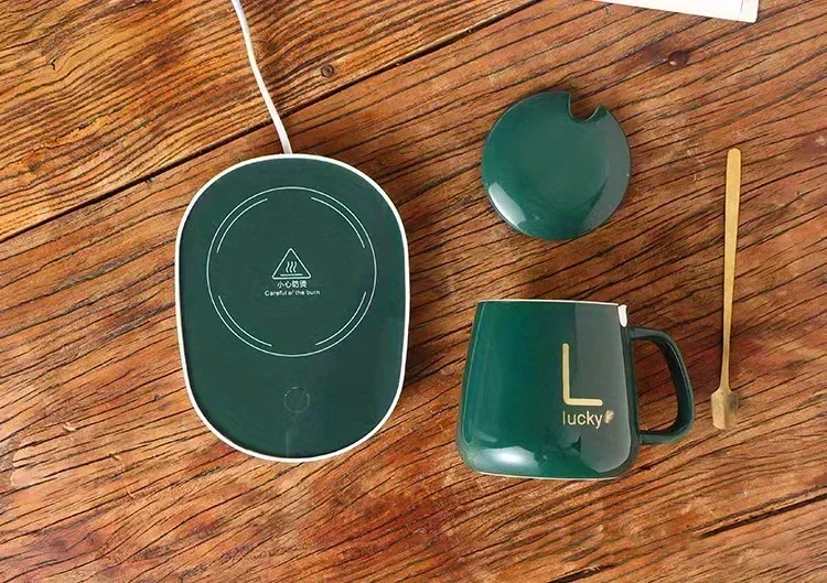 Coffret cadeau tasse thermostatique en céramique avec cuillère et sac de rangement, cuillère pliante, tasse portable, tasse à café thermostatique 55 °C