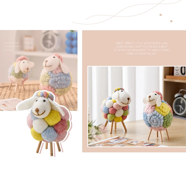 Adorable mouton en feutre, décoration kawaii, accessoires modernes pour la maison, figurines d'intérieur, accessoires de décoration de chambre, cadeaux pour enfants