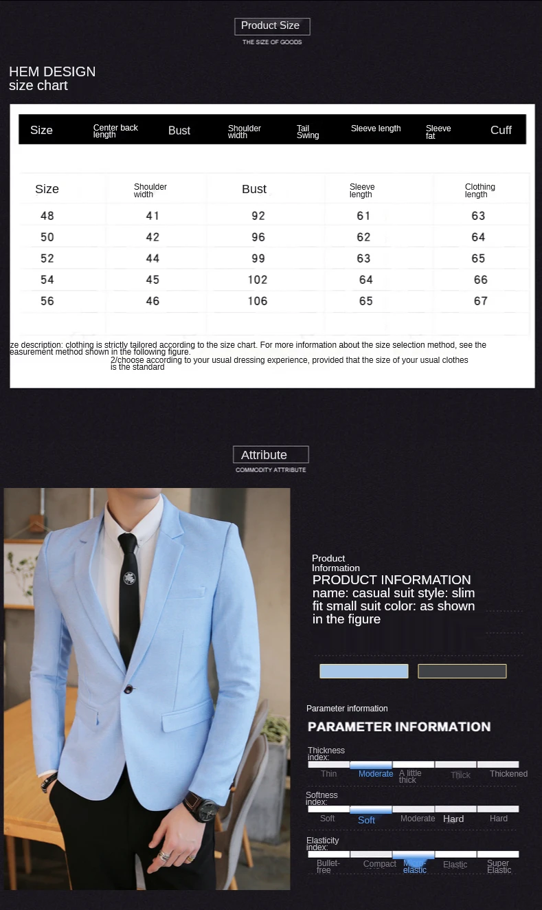 Blazer de costume une pièce à la mode coréenne pour hommes