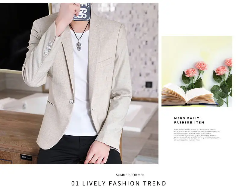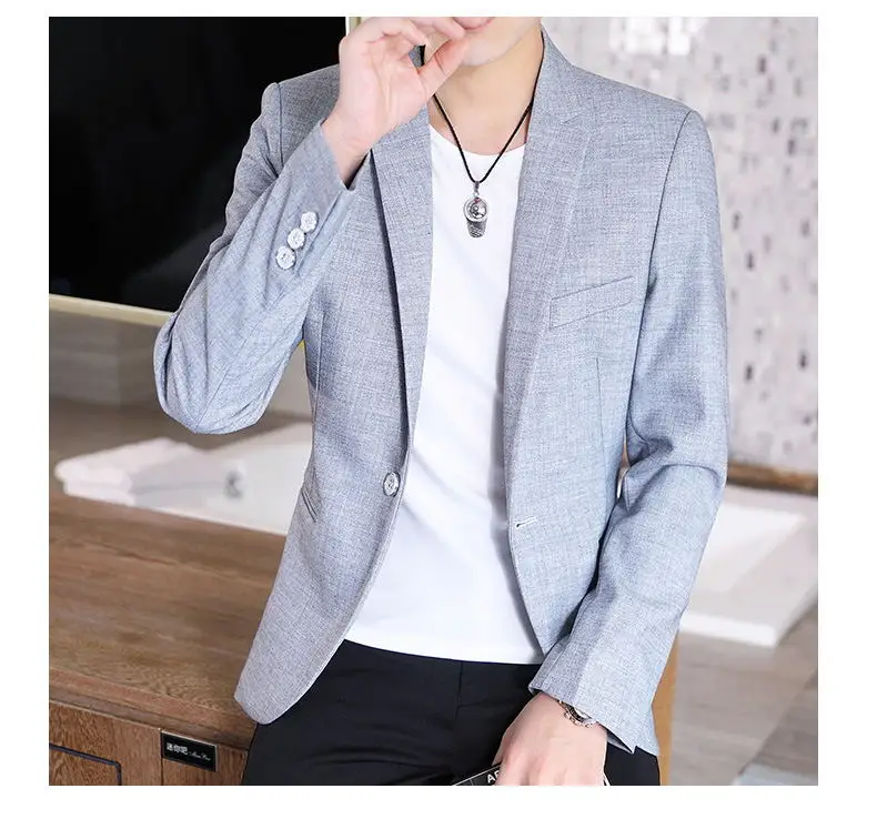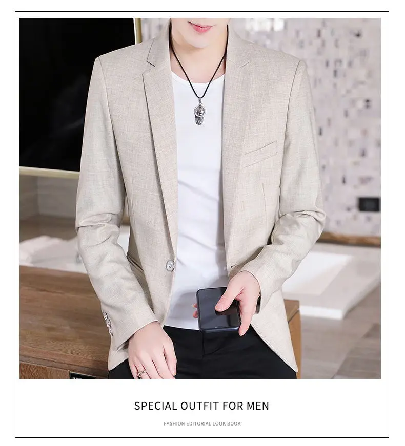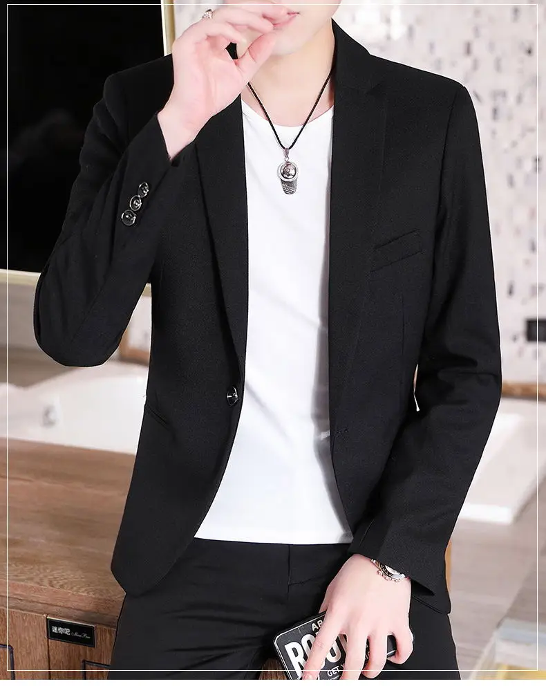 Blazers de costume de couleur unie coupe ajustée de style coréen pour hommes