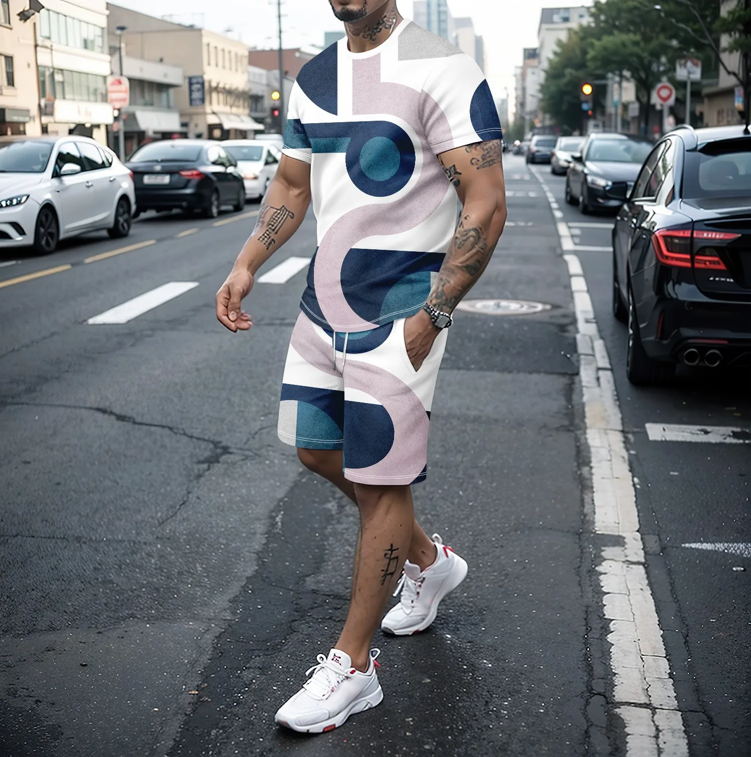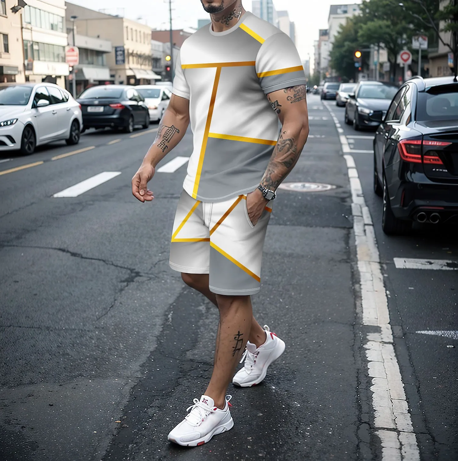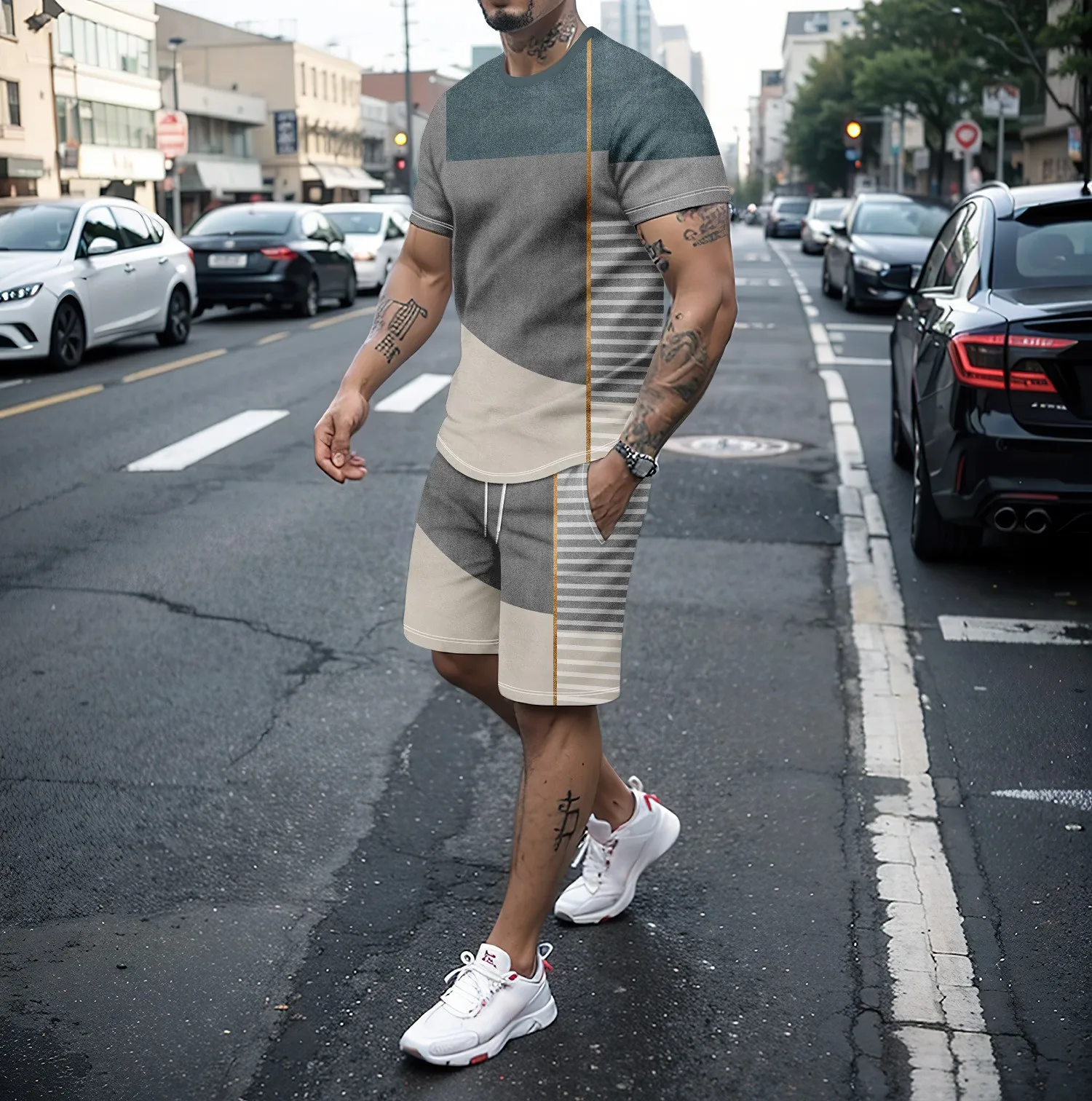 T-shirt et short d'été imprimés en 3D pour hommes