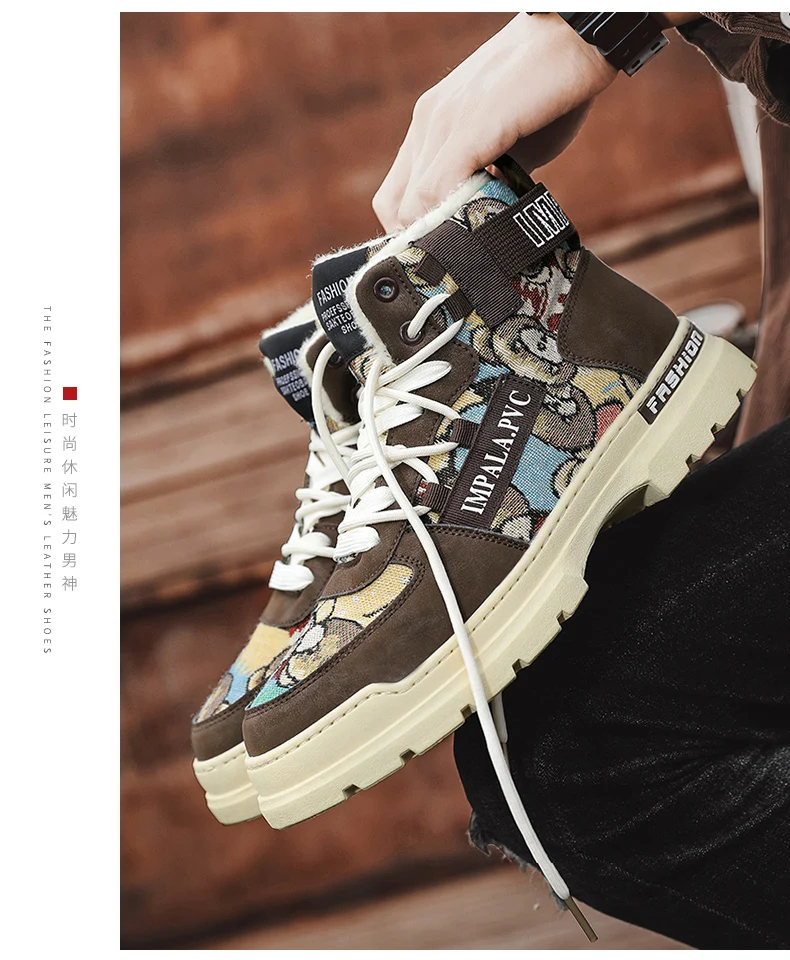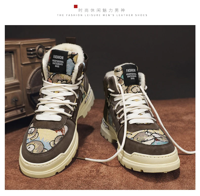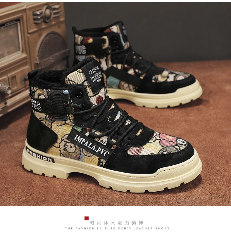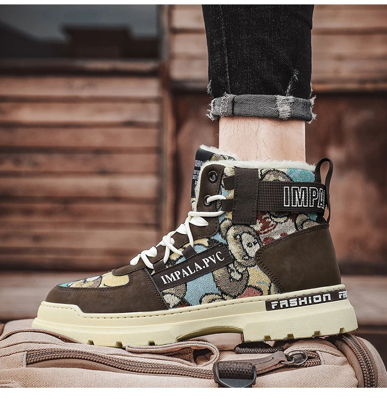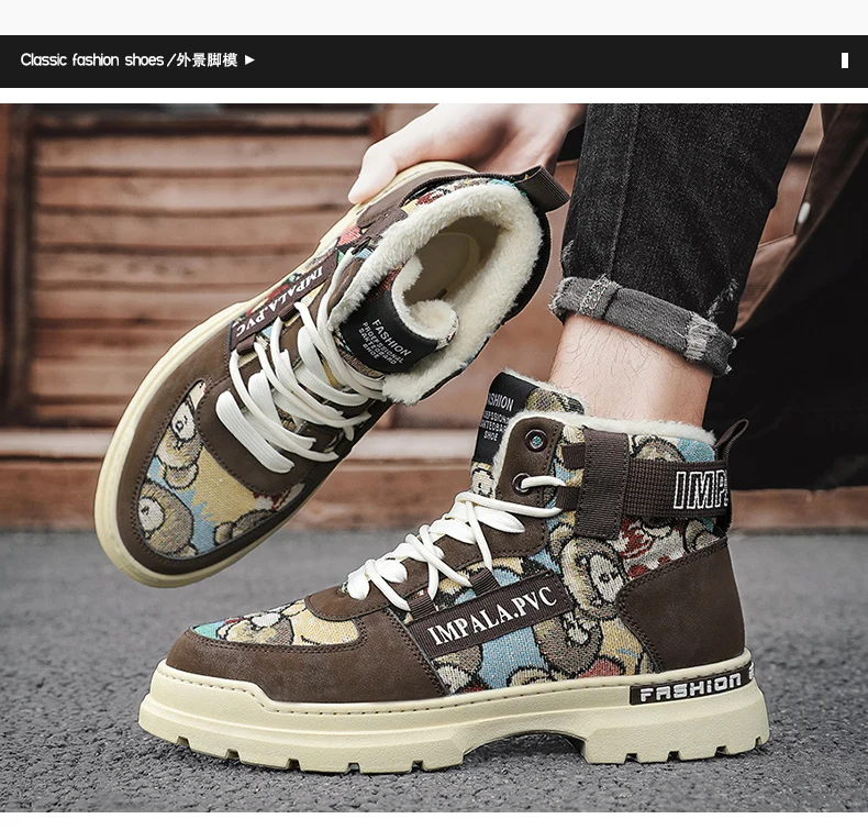 Bottes d'hiver imperméables et antidérapantes en peluche pour hommes
