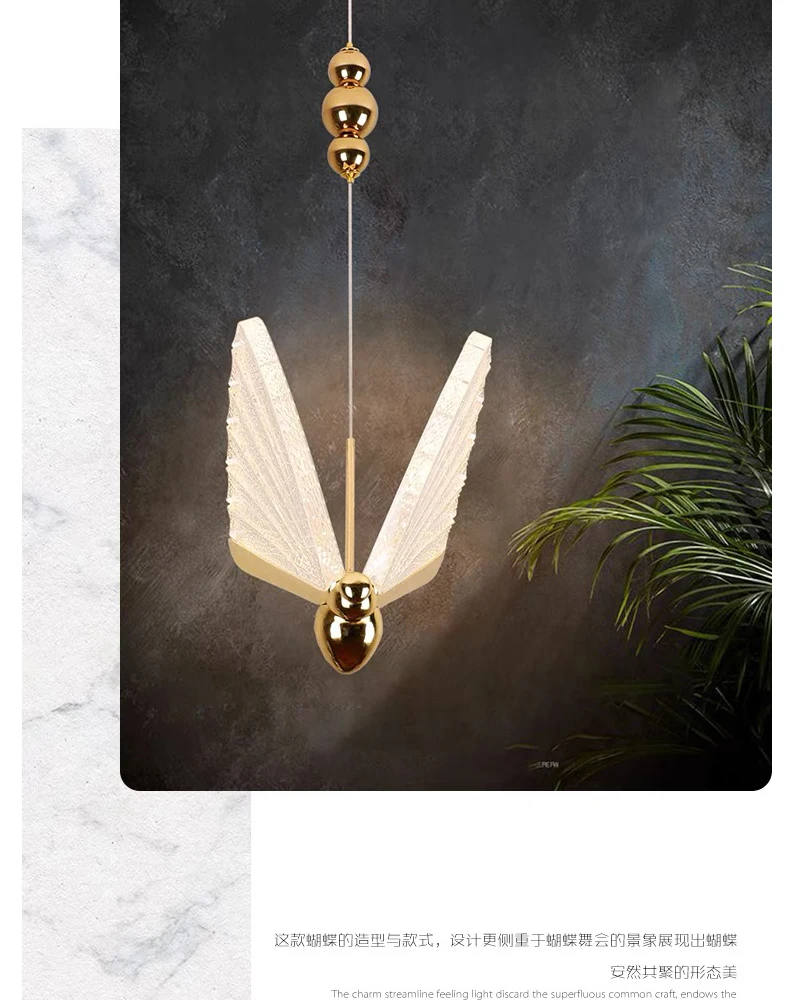Suspension LED d'intérieur style papillon nordique, luminaire décoratif d'intérieur, idéal pour une chambre à coucher, un salon ou une maison