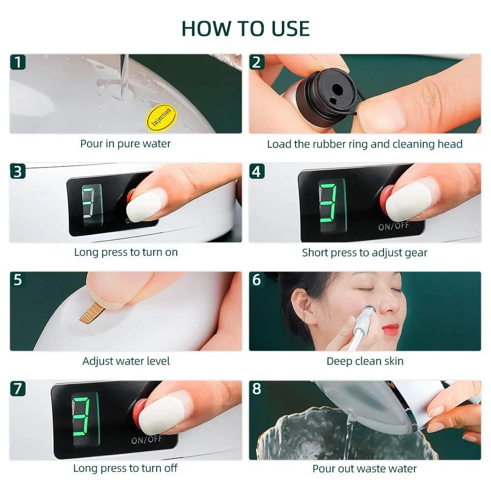 Faites l'expérience d'un rajeunissement de la peau en profondeur avec l'appareil de beauté portable Hydro Jet. Cet appareil innovant comprend une injection d'eau, une aspiration sous vide pour éliminer les points noirs et de petites bulles infusées d'oxygène pour un teint rafraîchi et éclatant. Idéal pour un usage à domicile, il offre des soins de la peau de niveau professionnel, garantissant à votre peau une apparence et une sensation revitalisées.