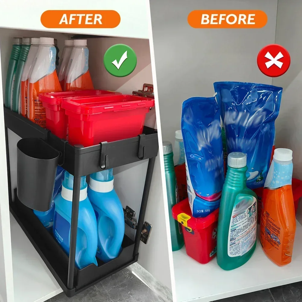 Organisateur de rangement pour pots à épices coulissants à double couche