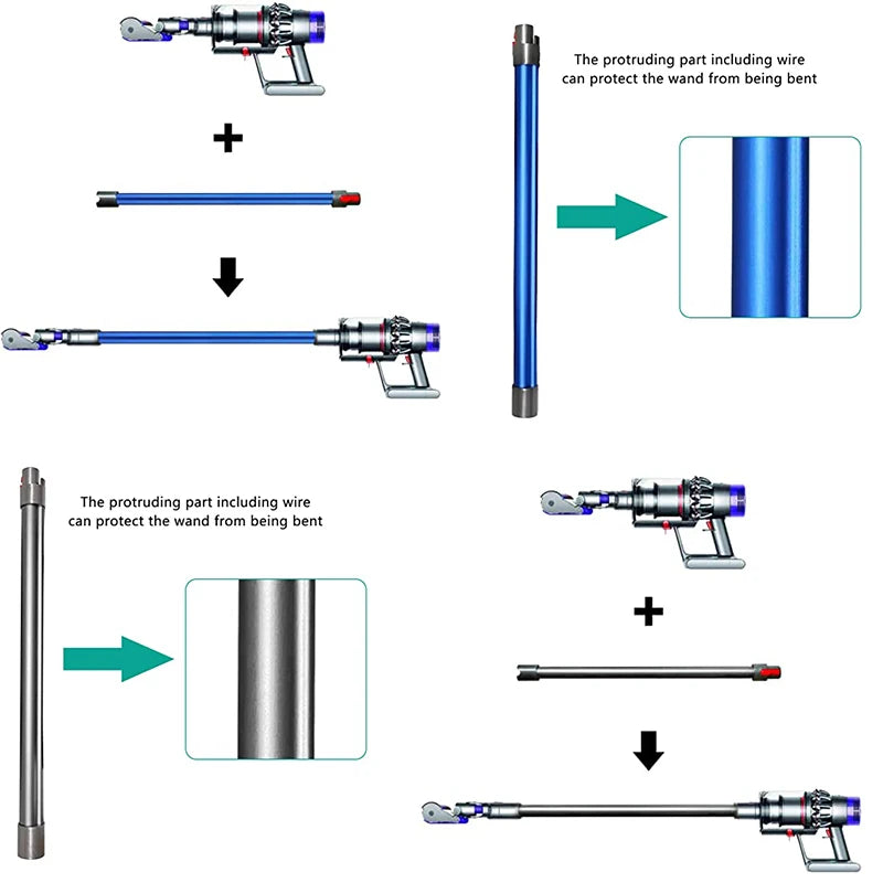 Tige d'extension pour aspirateur balai sans fil Dyson V7 V8 V10 V11 V15, tube de baguette à main à dégagement rapide, remplacement de la barre de tuyau
