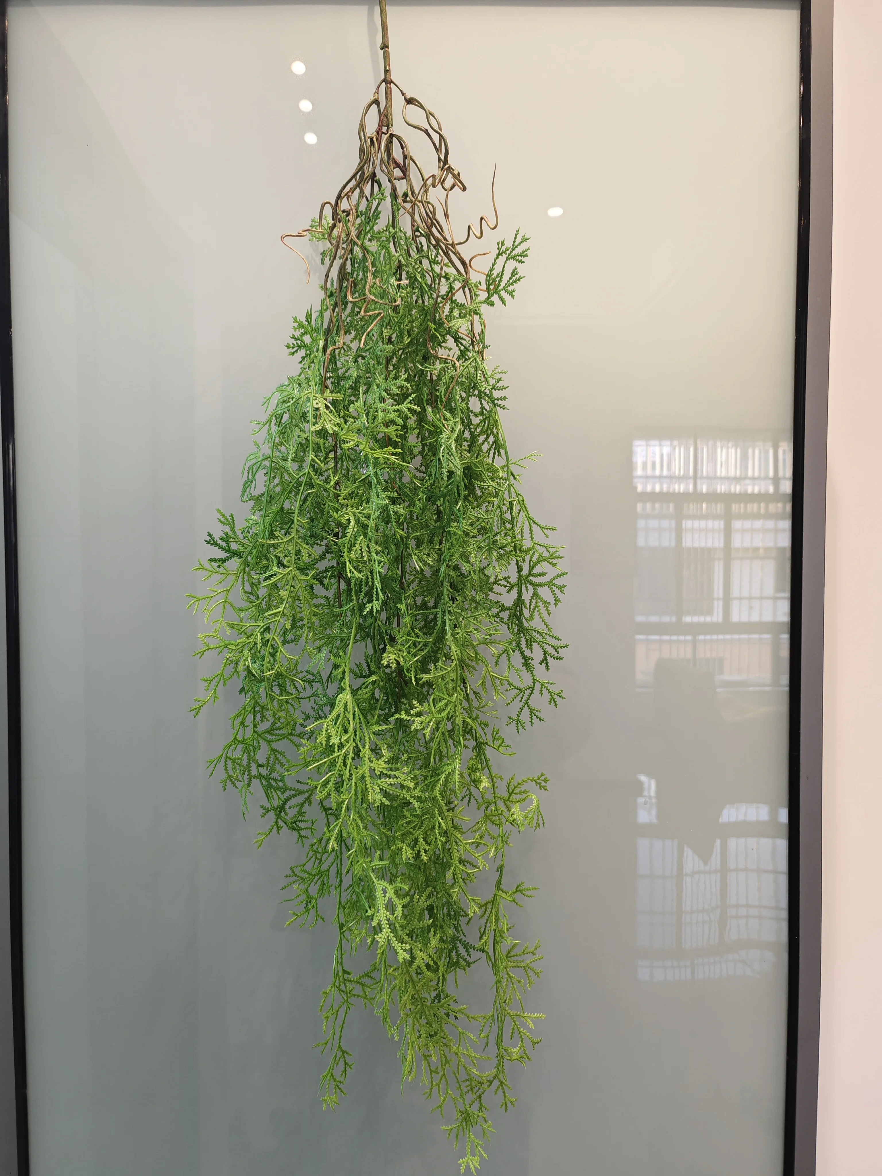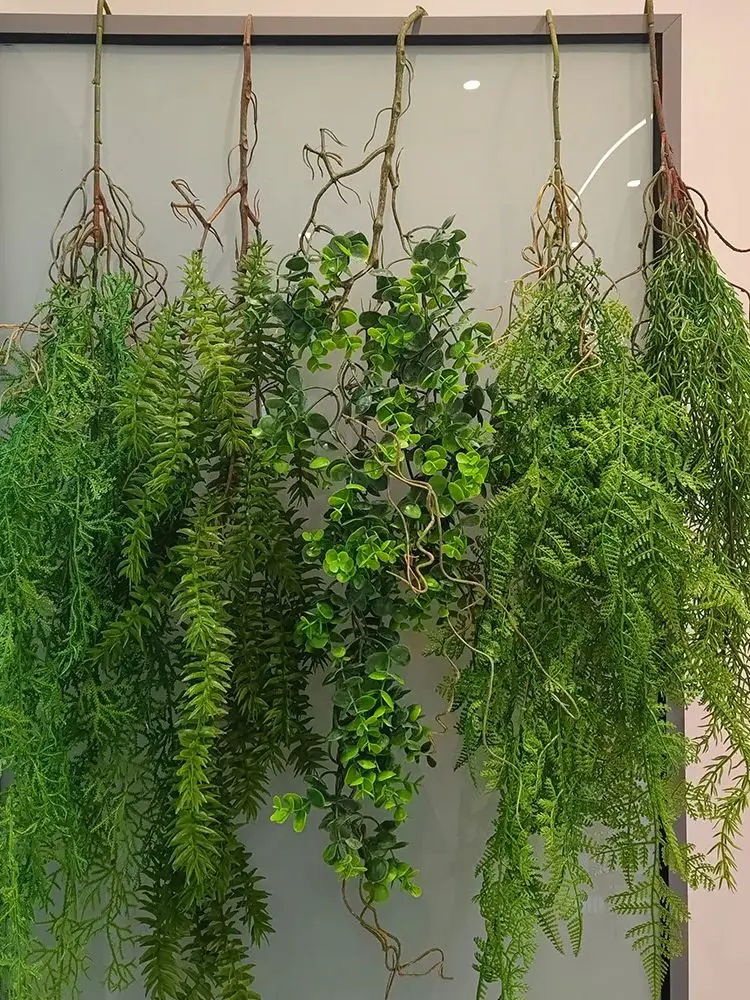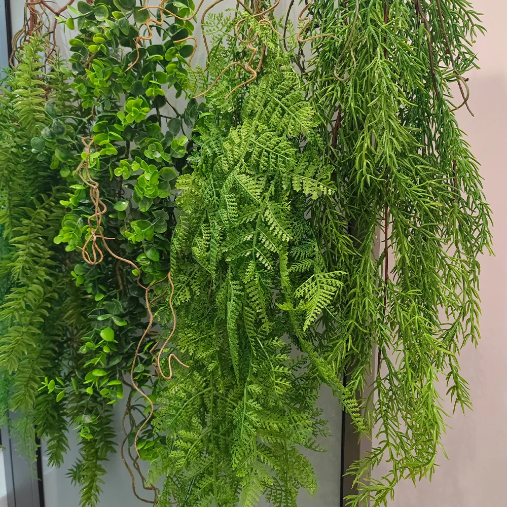 Plante suspendue en rotin et herbe verte