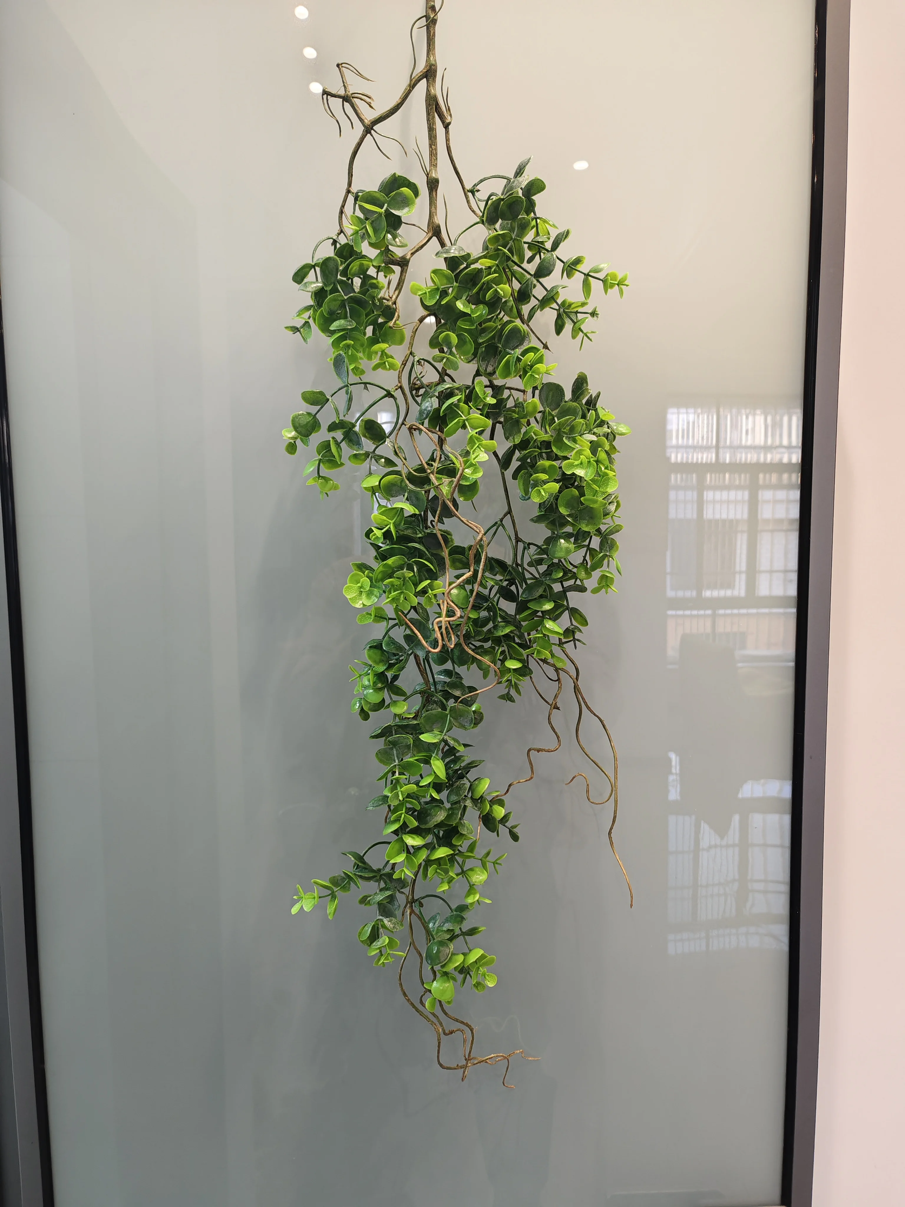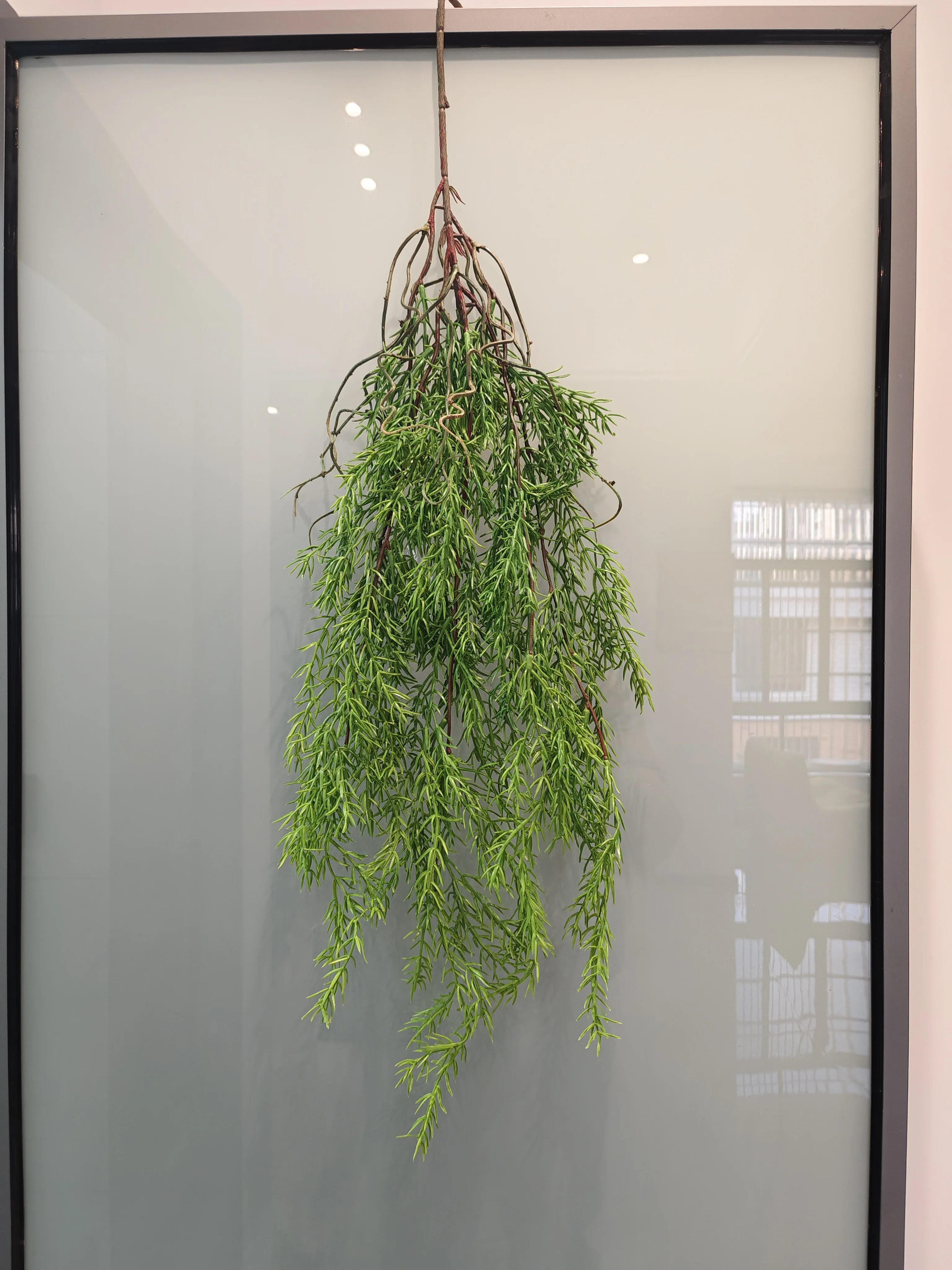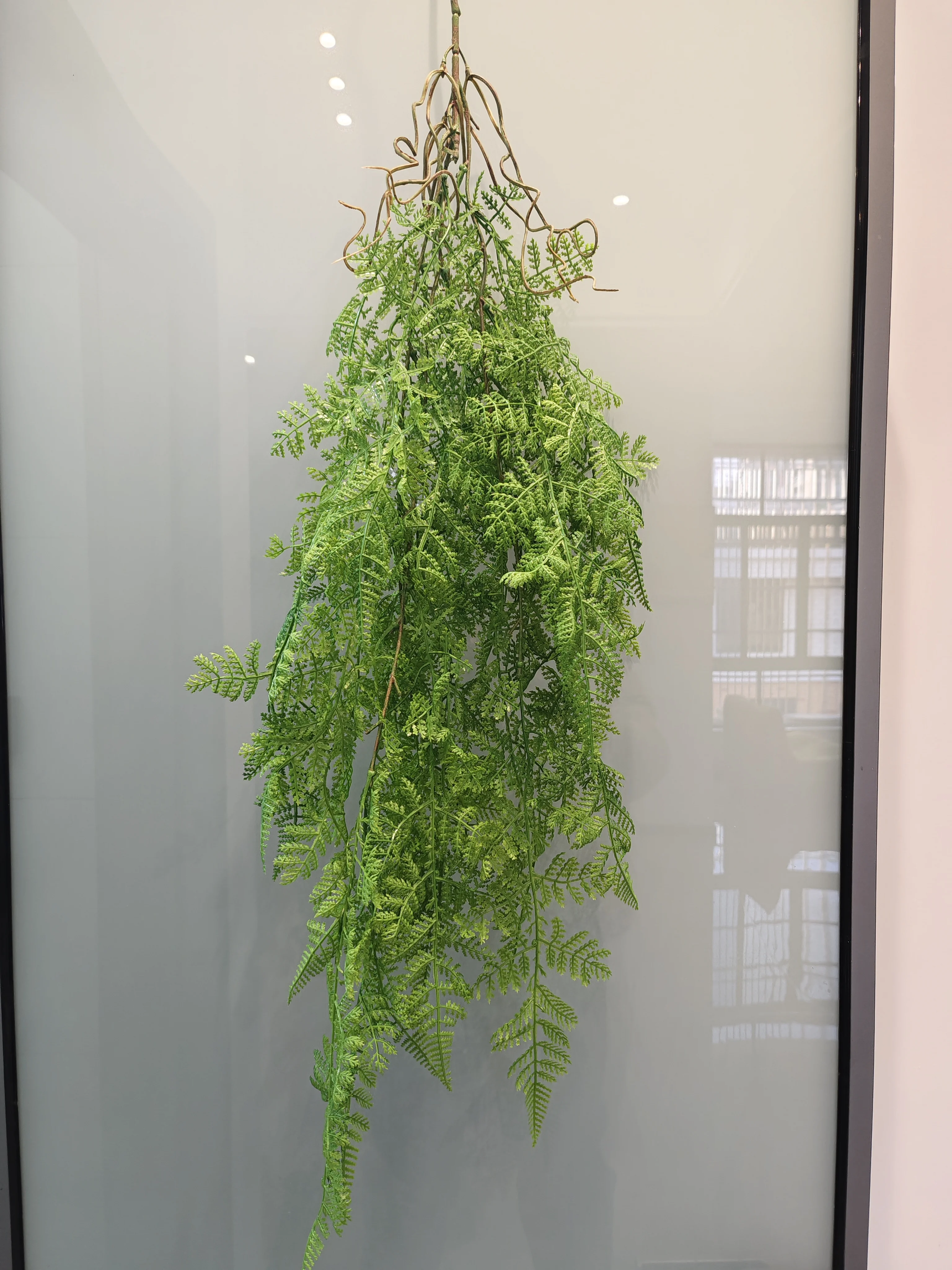 Plante suspendue en rotin et herbe verte