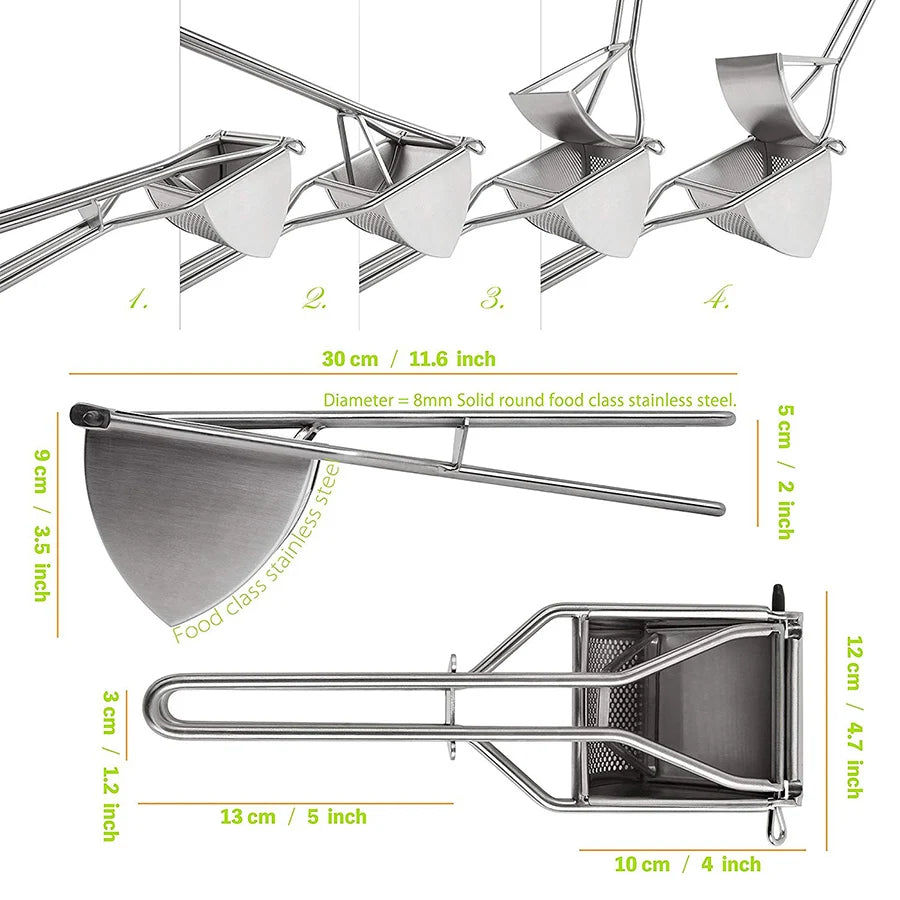 Conception unique : presse-pommes de terre fabriqué en acier inoxydable solide de haute qualité pour résister à une utilisation répétée. nettoyage facile, mode et durable. Largeur : 10 cm Longueur : 30 cm