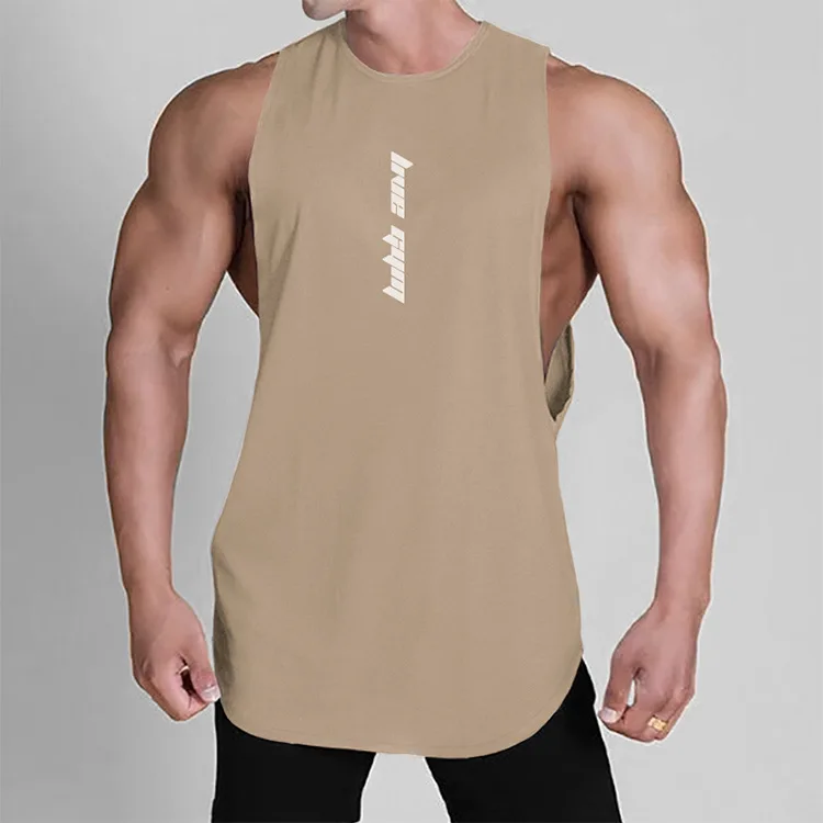 Gilet de sport d'été pour hommes, marque de mode européenne et américaine, grande taille, couleur unie, col rond, sans manches, avec lettre