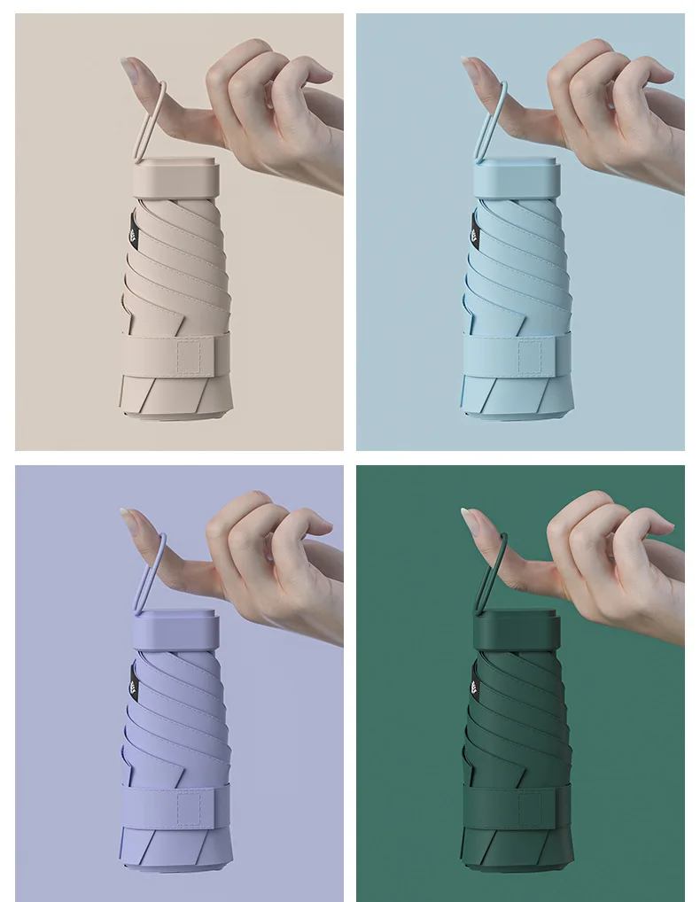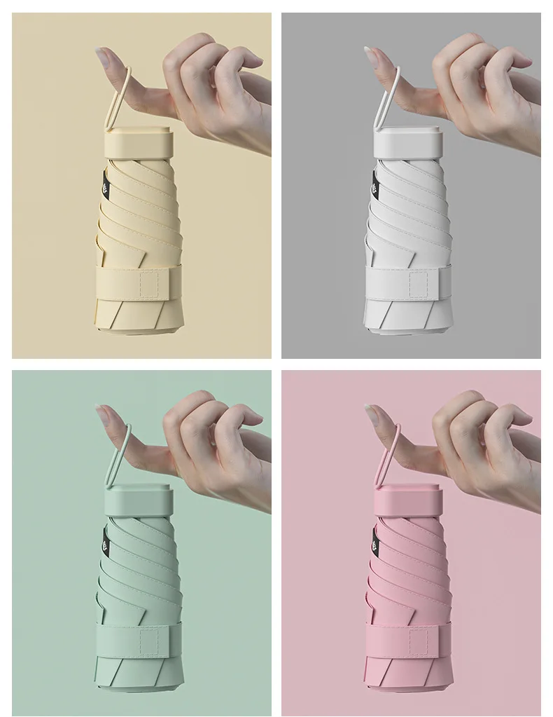 Mini parasol de poche, petite poche, parapluie de voyage pliant en vinyle, Protection UV, ombre solaire, Capsule de Parasol de poche