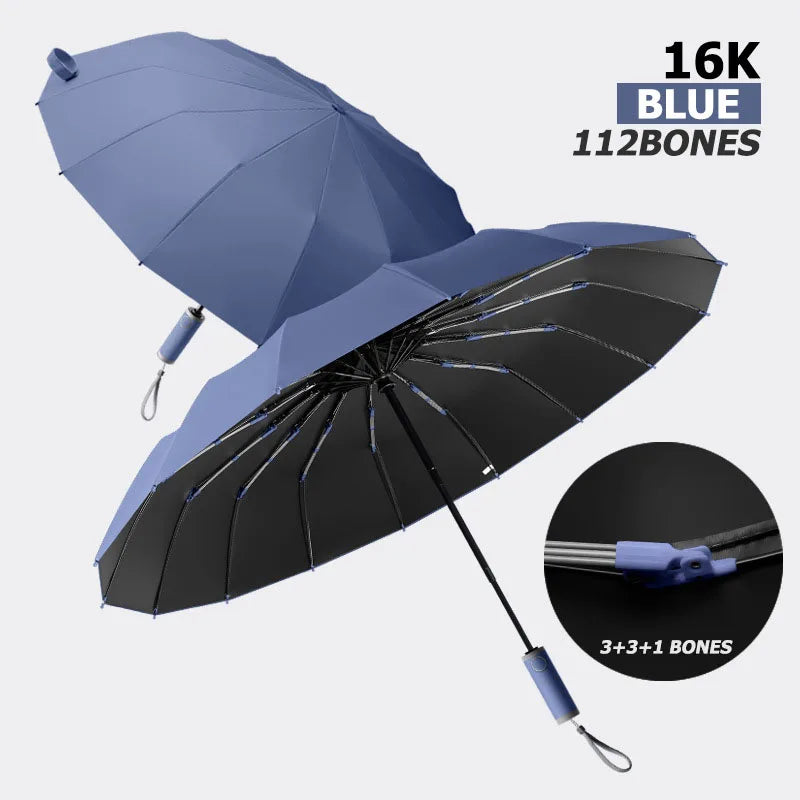 Les os 16K 112 adoptent une structure combinée en fibre de verre et en acier pour empêcher efficacement les nervures du parapluie de se briser ou de se déformer. ne craignant pas les vents forts