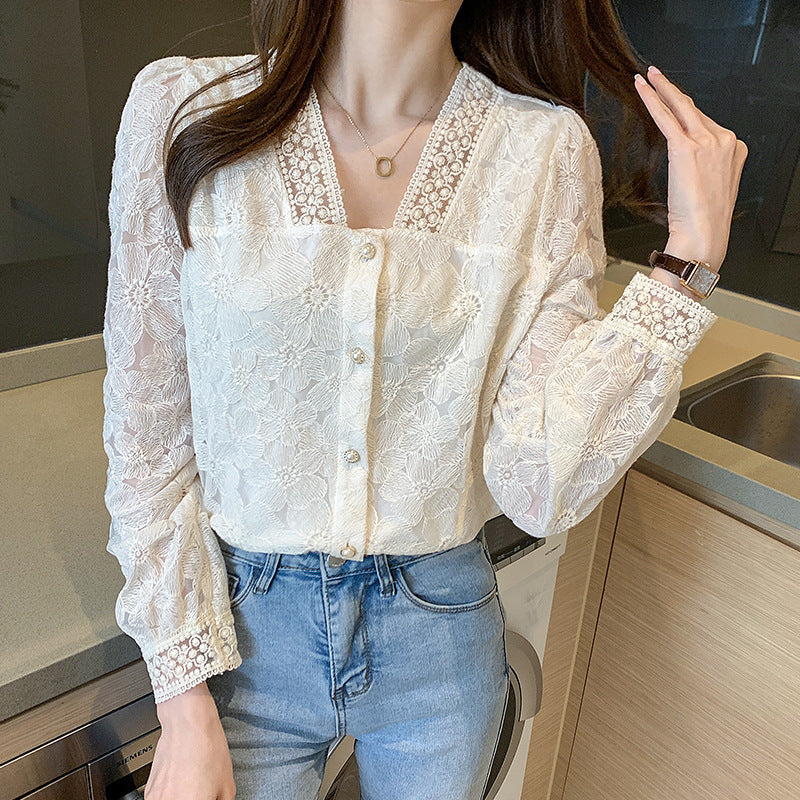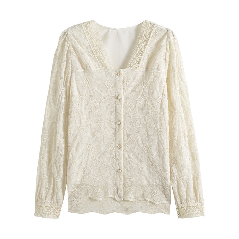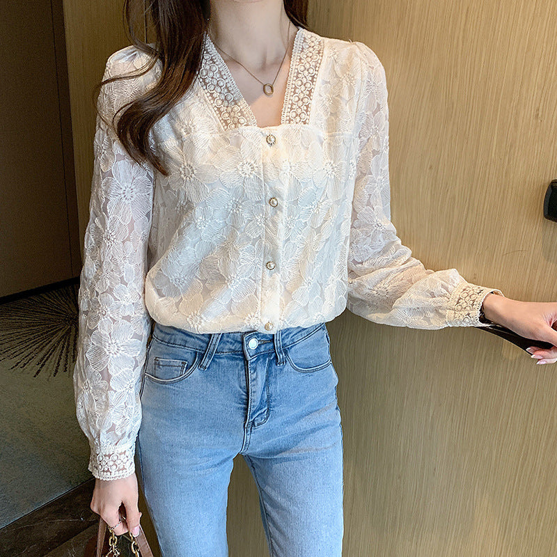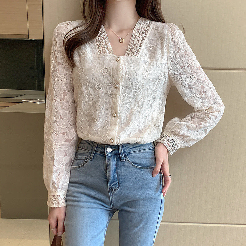 Haut pour femme à manches longues et col en V